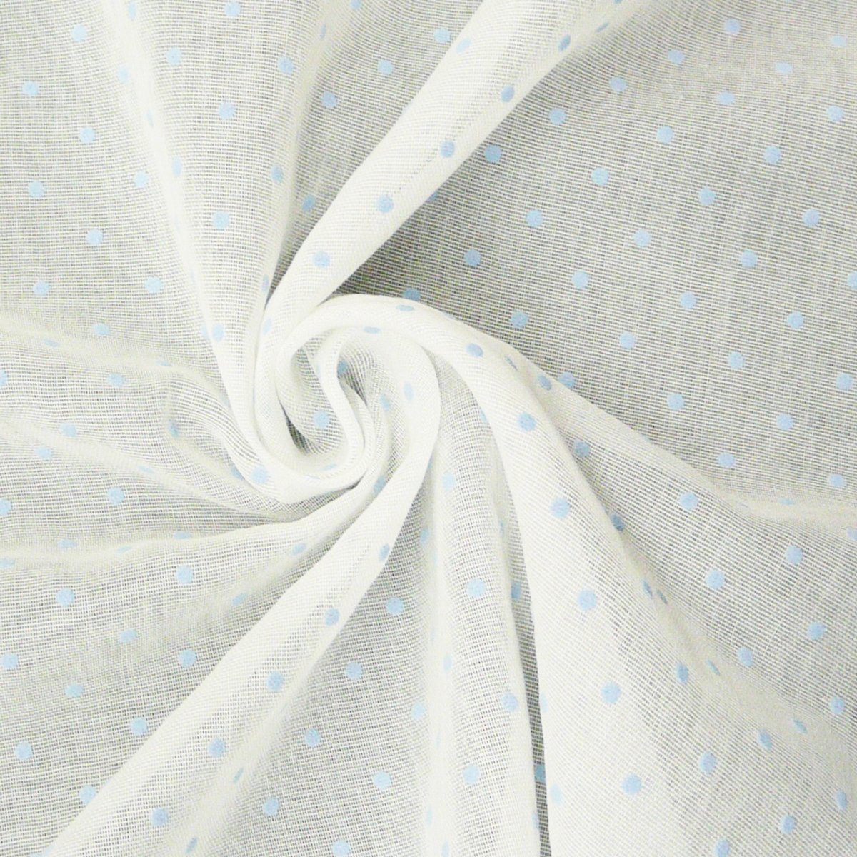 Meterware Gardinenstoff Stores Leinenstruktur weiß mit Punkten blau 2,80m Höhe