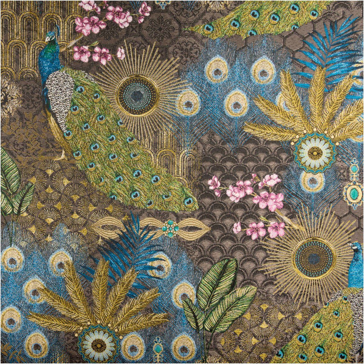 Schadstoffgeprüfter Jacquard Dekostoff mit Pfauenmotiv
