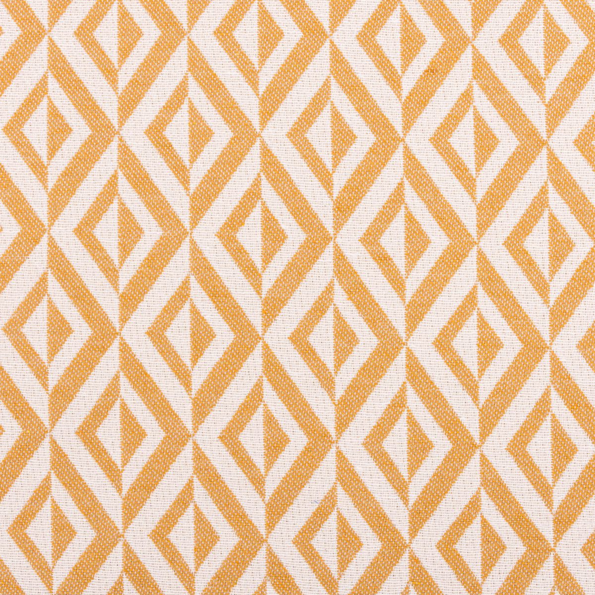 ART DÈCO-DESSIN: Das grafische Art Déco-Dessin in Ockergelb-Weiß ist ein eleganter Allover-Klassiker, der sich leicht einfügt und gut kombinieren lässt. Das Geometrie-Muster ist eingewebt und daher auf beiden Stoffseiten sichtbar. Du kannst den Stoff beidseitig verwenden, z.B. als Raumtrenner oder Türvorhang.