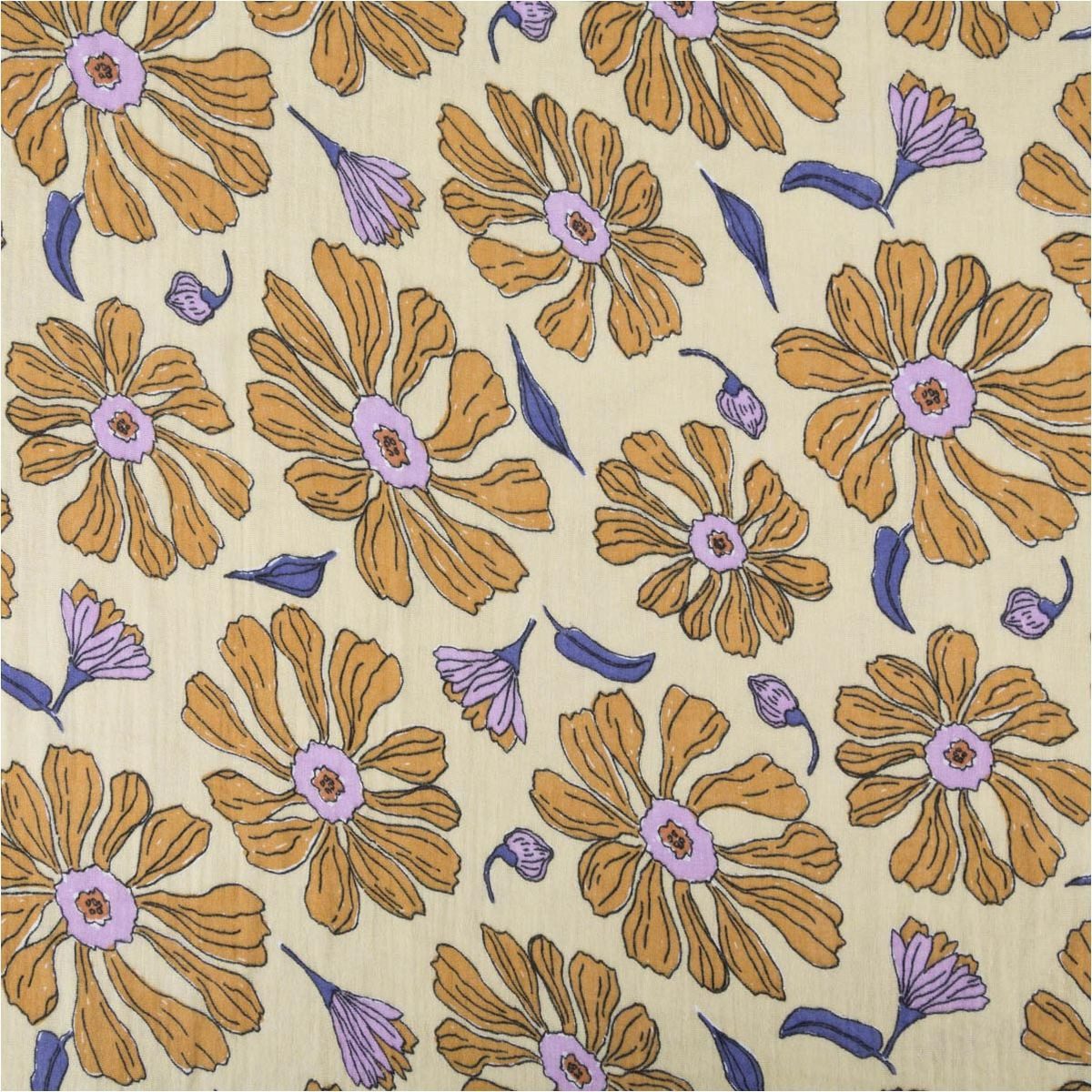 Blumen: Das moderne Dessin mit Blumen in Gelb und Lila ist ein exklusive Dessin aus Frankreich und macht deine Näh-Kreationen zu bezaubernden Hinguckern.