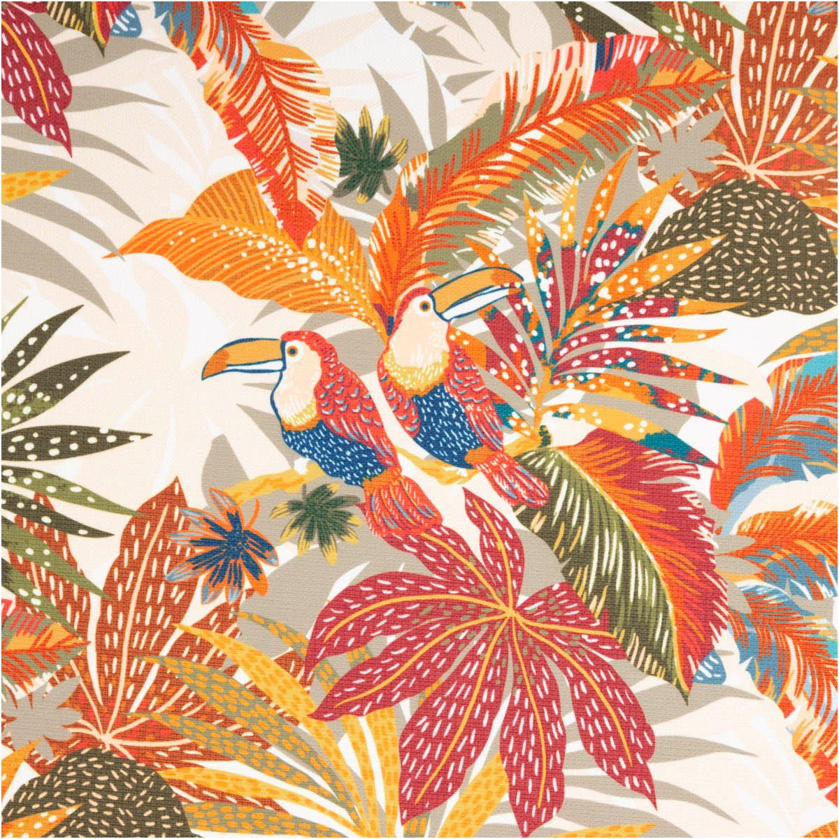 Exklusives Design: Exotische Blätter und Vögeln in Rot, Grün und anderen Farben – stilvoller Eyecatcher mit französischem Flair
