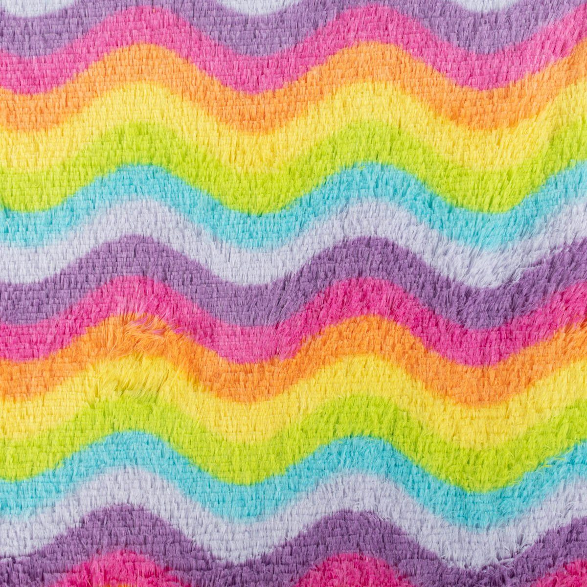 REGEBOGENFARBEN: Die bunten Regenbogenfarben sorgen überall für gute Laune und machen den Plüsch Stoff perfekt für Kostüme und auffallende Bekleidung.