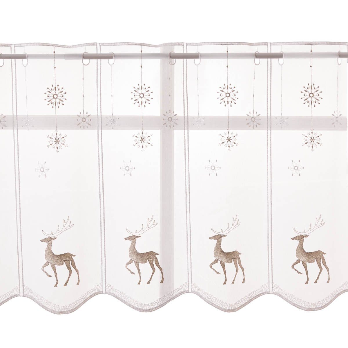 Weihnachts-Dessin: Die Scheibengardine mit hochwertigen Stickereien ist eine wunderschöne weihnachtliche Dekoration für deine Fenster. Die gestickten Hirsche und Schneeflocken in Silber verleihen der Gardine ihren besonderen Charme.