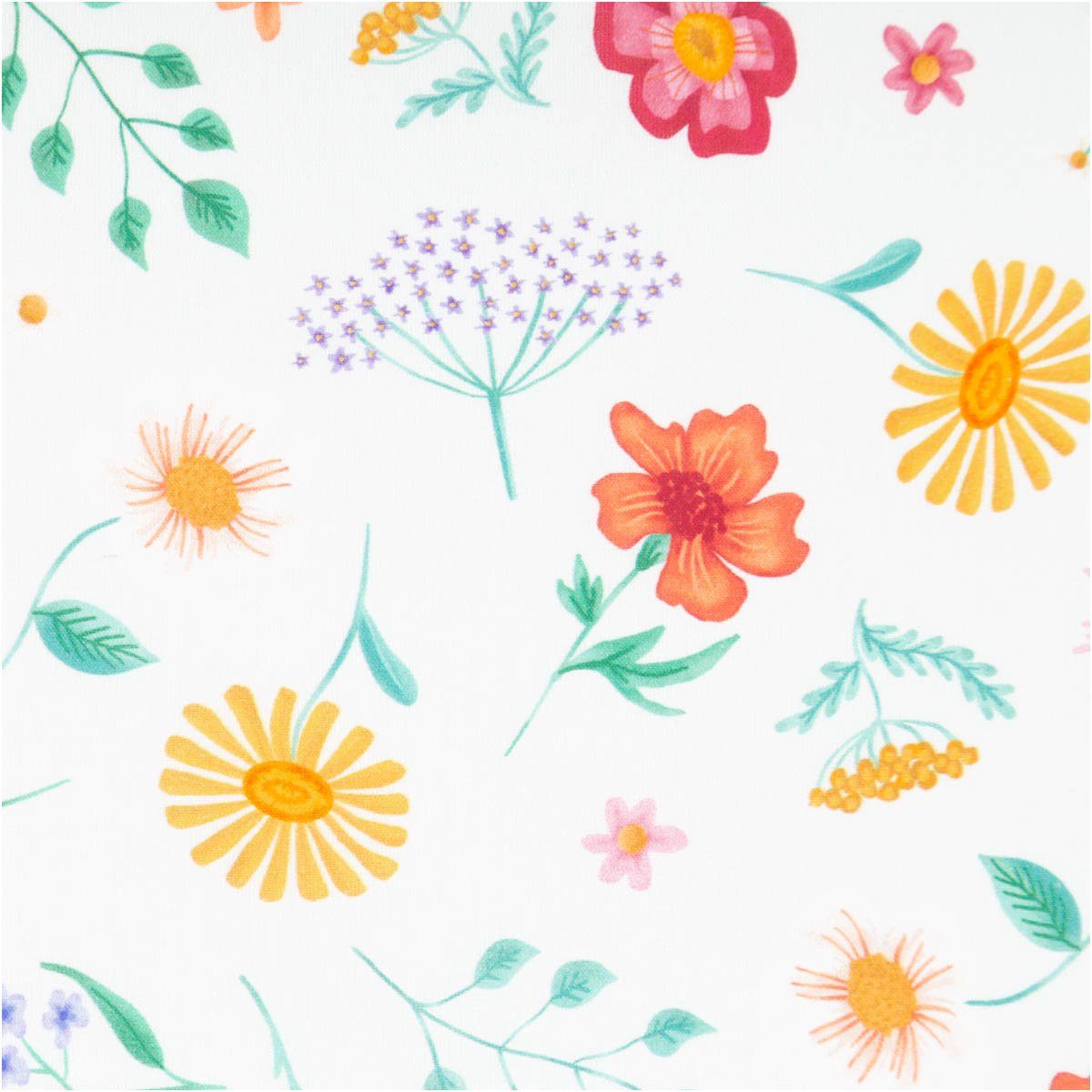 Baumwollstoff Popeline mit buntem Blumenmuster auf weißem Grund