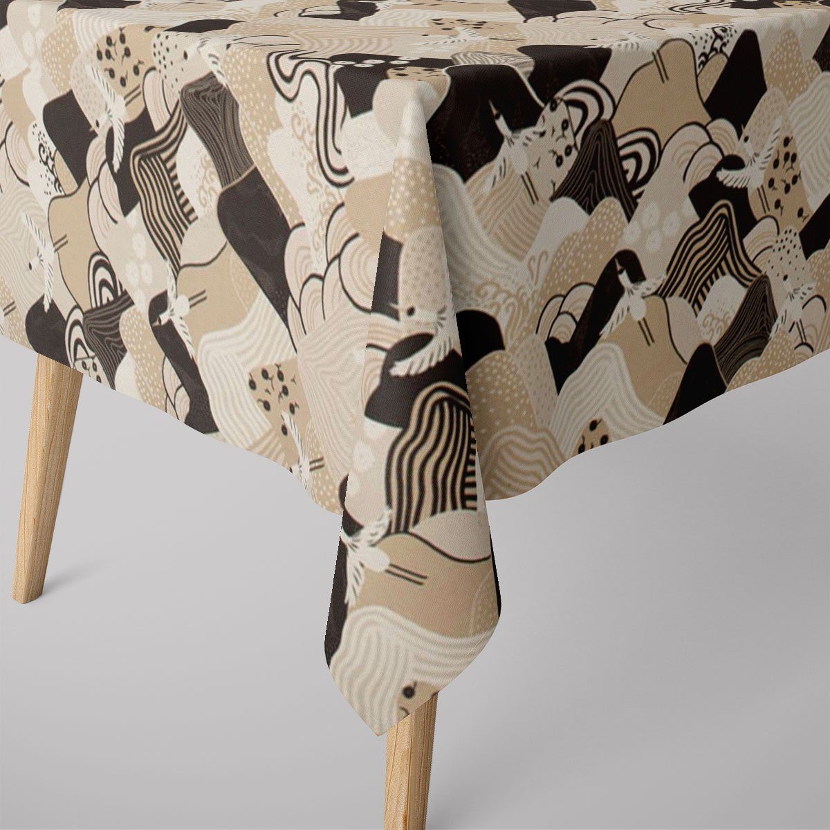 NATÜRLICH UND MODERN: Die Tischdecke mit den über stilisierte Hügel fliegenden Kranichen bringt einen Hauch Asien in dein Zuhause.