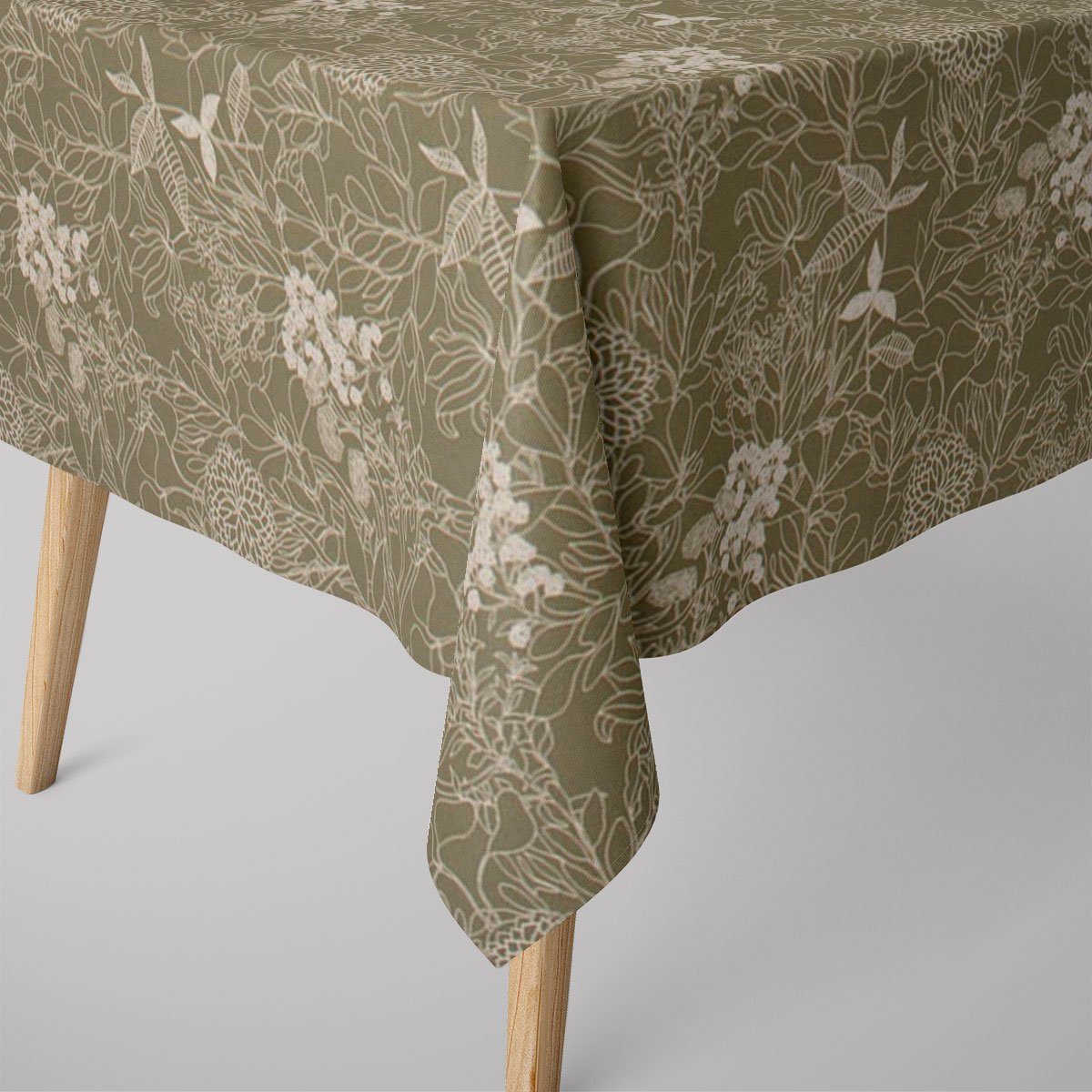 NATÜRLICH UND MODERN: Die stilisierten Blüten und Blätter auf dem grünen Untergrund machen die Tischdecke zu einem bezaubernden Highlight in deiner Deko.