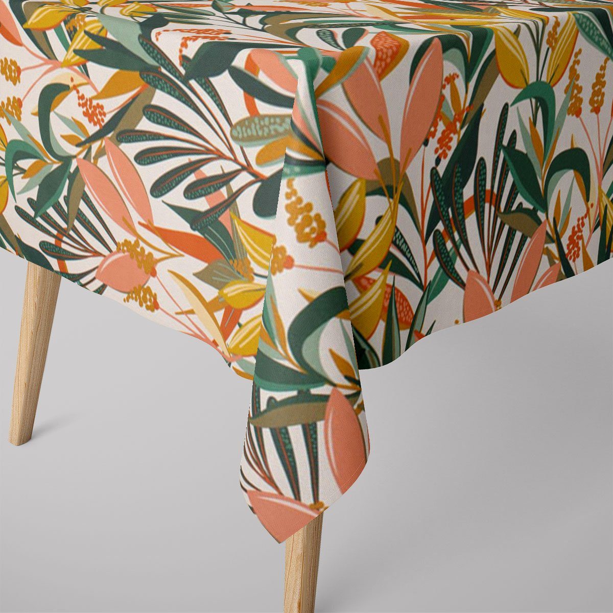 STILVOLLE BLÄTTER: Die Tischdecke, die abwaschbar ist, verwandelt mit ihrem wunderschönen Blätter-Print deinen Tisch in eine exotische Oase. Standardmäßig versehen wir alle unsere Tischdecken mit einem ca. 2 cm breiten Saum.