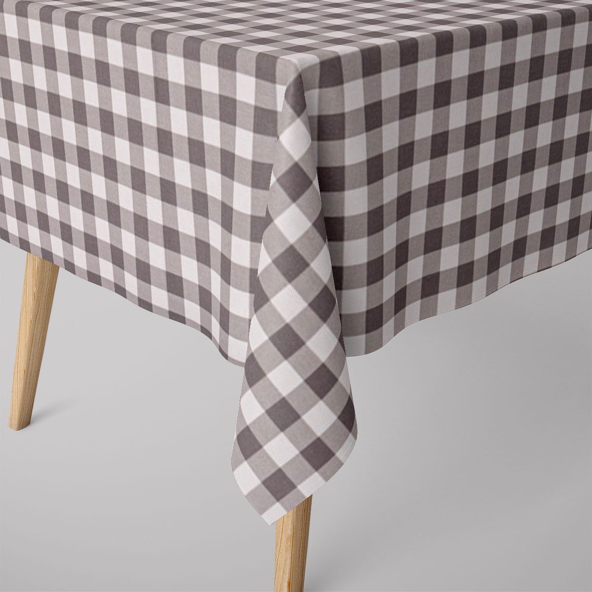 MODERNES KAROMUSTER: Die abwaschbare Tischdecke mit ihrem großen, grau-weißen Karomuster ist ein echtes Schmuckstück und passt nicht nur zum Landhaus-Chic. Standardmäßig versehen wir alle unsere Tischdecken mit einem ca. 2 cm breiten Saum.
