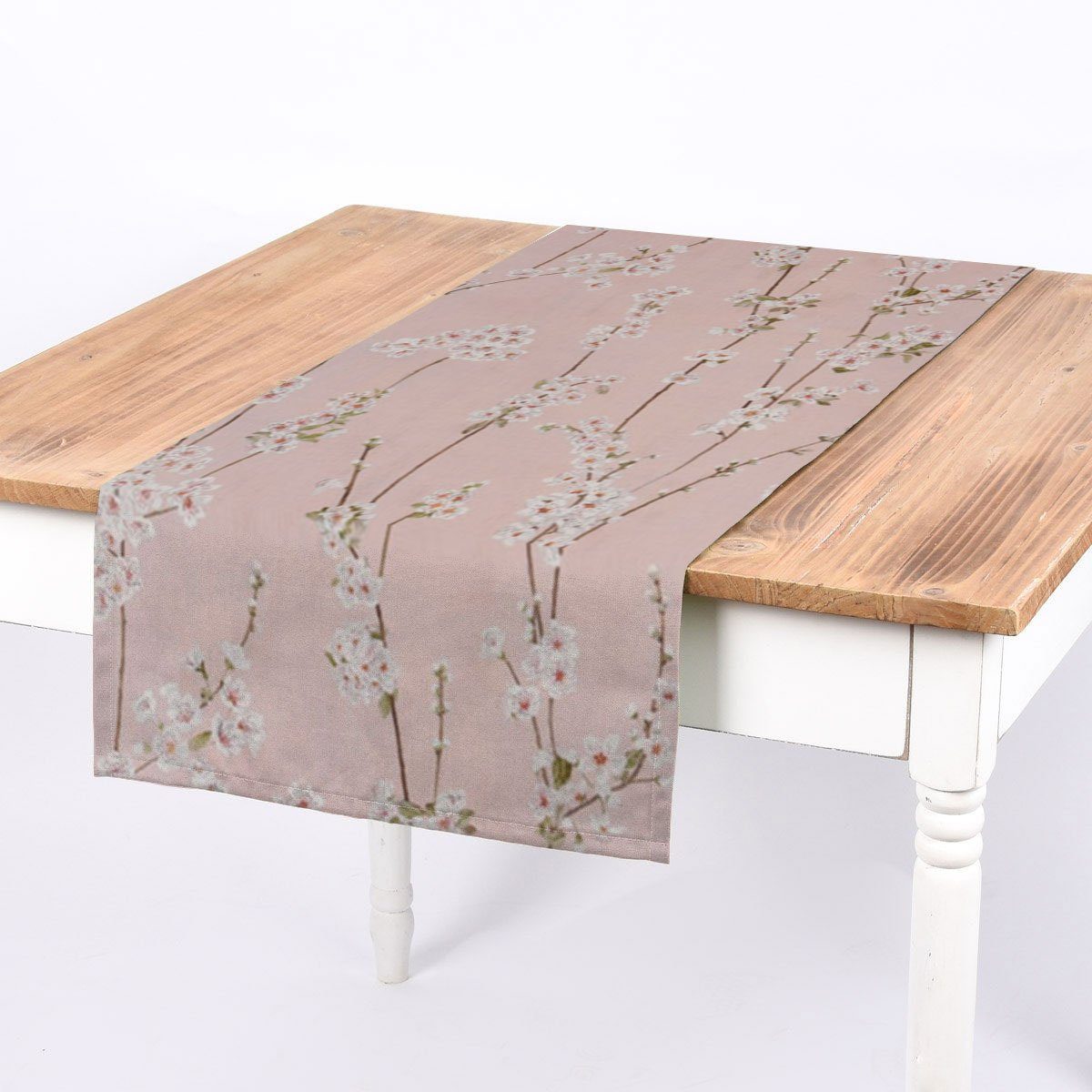 VIELSEITIG EINSETZBAR: Ob auf dem Tisch im Ess- oder Wohnzimmer, auf der Schlafzimmerkommode oder auf dem Sideboard im Flur – der Tischläufer mit wunderschönem Mandelblüten-Print ergänzt Dein Interieur perfekt und bringt Gemütlichkeit in Dein Zuhause