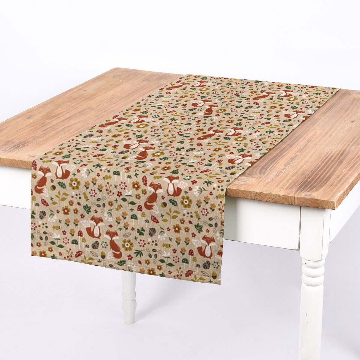 ORIGINELLES DESSIN: Der Tischläufer Autumn Woodland Fox im natürlichen Leinenlook von Schöner Leben. ist ein bezauberndes Schmuckstück für deinen Tisch!