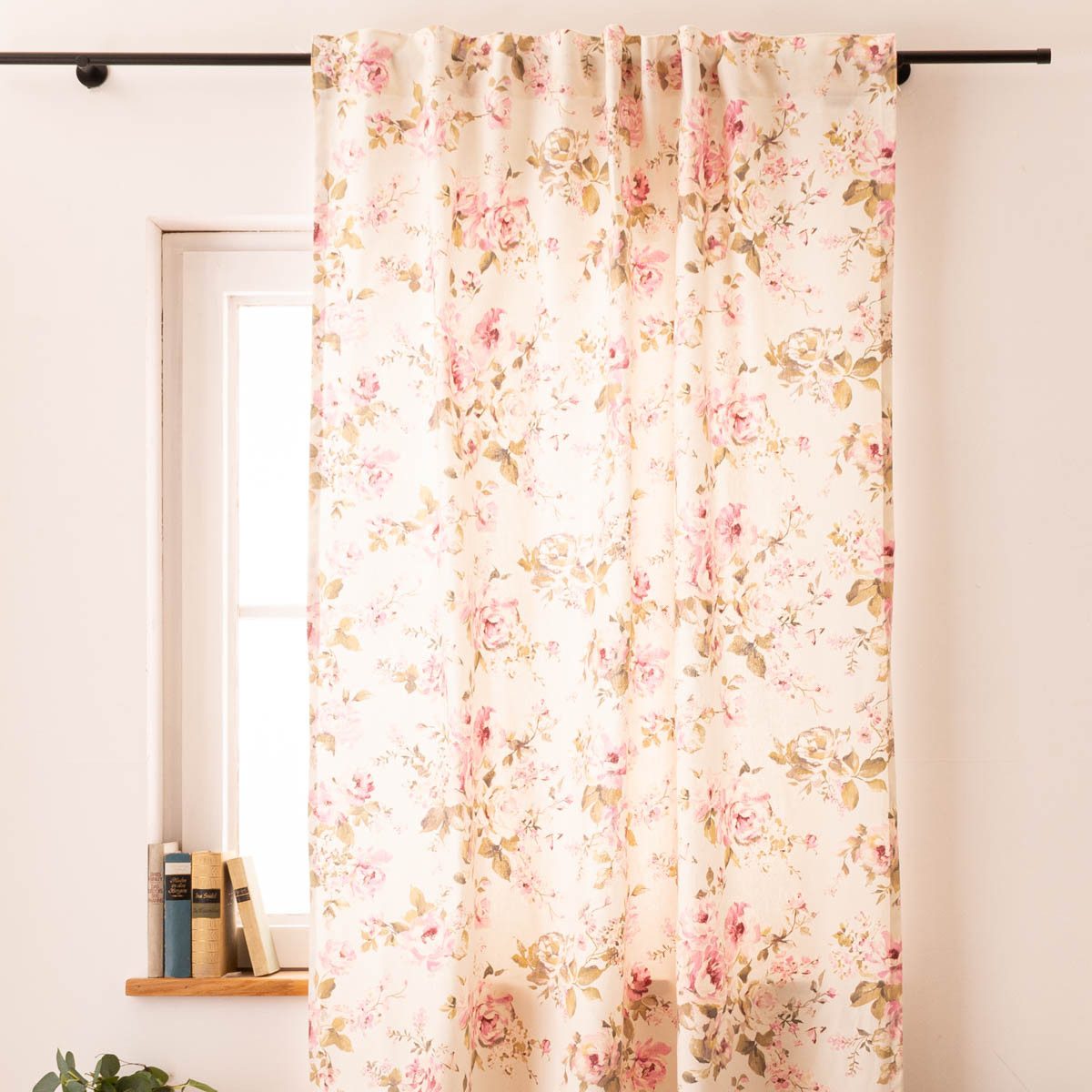 ROSEN-PRINT: Das prächtige Rosendessin mit Blüten und Blättern kommt auf dem Vorhang in Ecru toll zur Geltung und passt hervorragend zu vielen klassischen Einrichtungsstilen wie Landhaus oder Romantisch.