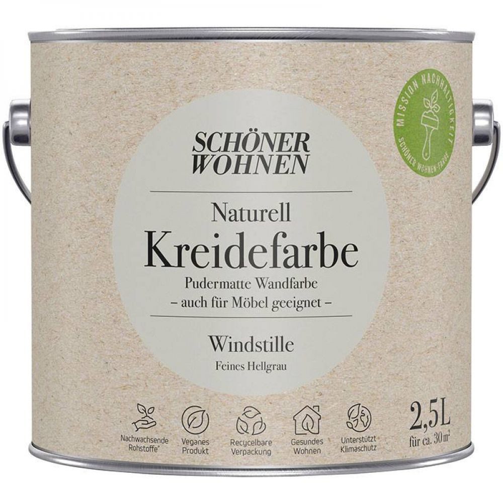 Pudermatte Wandfarbe auch für Möbel geeignet. Schaffeeine natürliche Balance in Deinem Zuhause. Dies gelingt Dir mitder Wandfarbe SCHÖNER WOHNEN Naturell Kreidefarbe besondersgut. Die vegane Rezeptur enthält hochwertige Pigmente sowie einBindemittel, das zu 100 % aus nachwachsenden Rohstoffen besteht.*Bei der sorgfältigen Herstellung entstandene CO2-Emissionen werdenkompensiert und die nachhaltige Verpackung lässt sich sehrgut recyceln. Wird die Naturell Kreidefarbe auf Möbeln eingesetzt,bietet der SCHÖNER WOHNEN Naturell Möbelschutz die passende Versiegelung für die Oberfläche. Unser Planet. Unser Zuhause. Mission Эко-товары MitSCHÖNER WOHNEN Naturell Kreidefarbe trifft ästhetischerAnspruch auf ökologische Verantwortung. Eine Farbserie diefür das Lebensgefühl von heute steht und nicht nurschönes sondern auch ressourcenschonendes Wohnen ermöglicht.Durch zahlreiche Maßnahmen werden die anfallendenCO2-Emissionen der Naturell Kreidefarbe bestmöglich reduziert.Beispielsweise durch den Einsatz eines Bindemittels, das zu 100 %aus nachwachsenden Rohstoffen besteht*, durch eine Metalldose, die ausCO2- reduziertem Stahl hergestellt wird und sich sehr gut recycelnlässt sowie mit einer Banderole aus FSC-zertifiziertem Altpapier.Noch verbleibende, unvermeidbare CO2-Emissionen werden über ein zertifiziertes Klimaschutzprojekt ausgeglichen. *nach dem Massenbilanzverfahren Die Qualität: Diepudermatten SCHÖNER WOHNEN Naturell Kreidefarben sind hochdeckendund werden unter sorgfältiger Verwendung von natürlicher Kreide,Porzellanerde und hochwertigen Pigmenten hergestellt. Die veganeRezeptur ist außerdem frei von Konservierungsmitteln und damitfür Всеrgiker geeignet. Die Naturell Kreidefarben sind zudem geprüft und als schadstoff- sowie emissionsarm bewertet worden. Farbton: Windstille (feines Hellgrau) Inhalt: 2,5 Ltr. Hersteller-Art: 947400257470 |