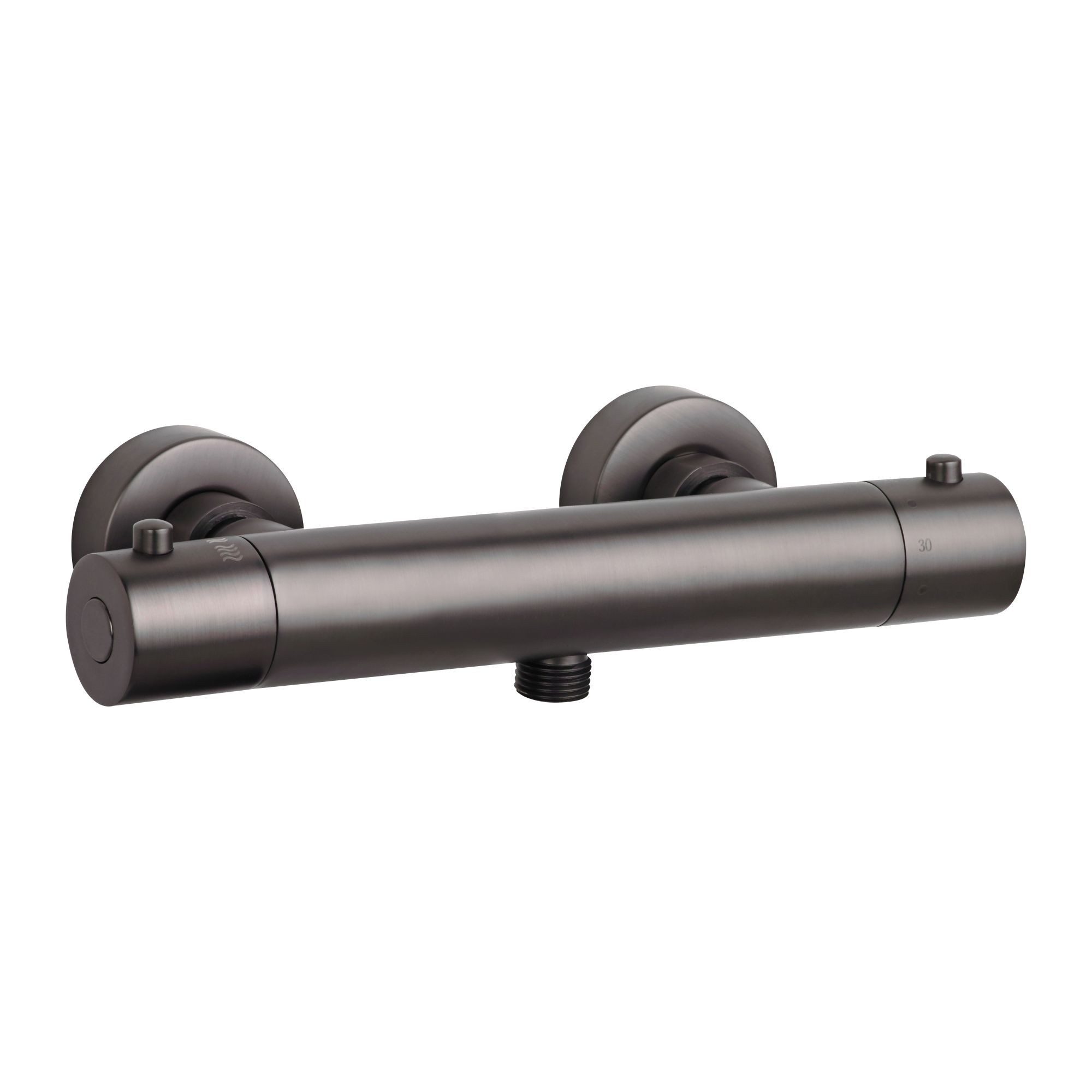 Das DICU Dusch-Thermostat mit Schlauchanschluss aus der SCHÖNER WOHNEN-Kollektion vereint modernes Design mit höchster Sicherheit und präziser Temperaturregelung. Erhältlich in den stilvollen Farbvarianten Chrom, Mattschwarz, Industrial und Mattgold, fügt sich diese hochwertige Thermostatarmatur harmonisch in jedes Badezimmerkonzept ein. Mit einer Breite von 26,8 cm, einer Tiefe von 7,8 cm und einer Höhe von 5,2 cm überzeugt sie durch ihre kompakte Bauweise und einfache Handhabung.