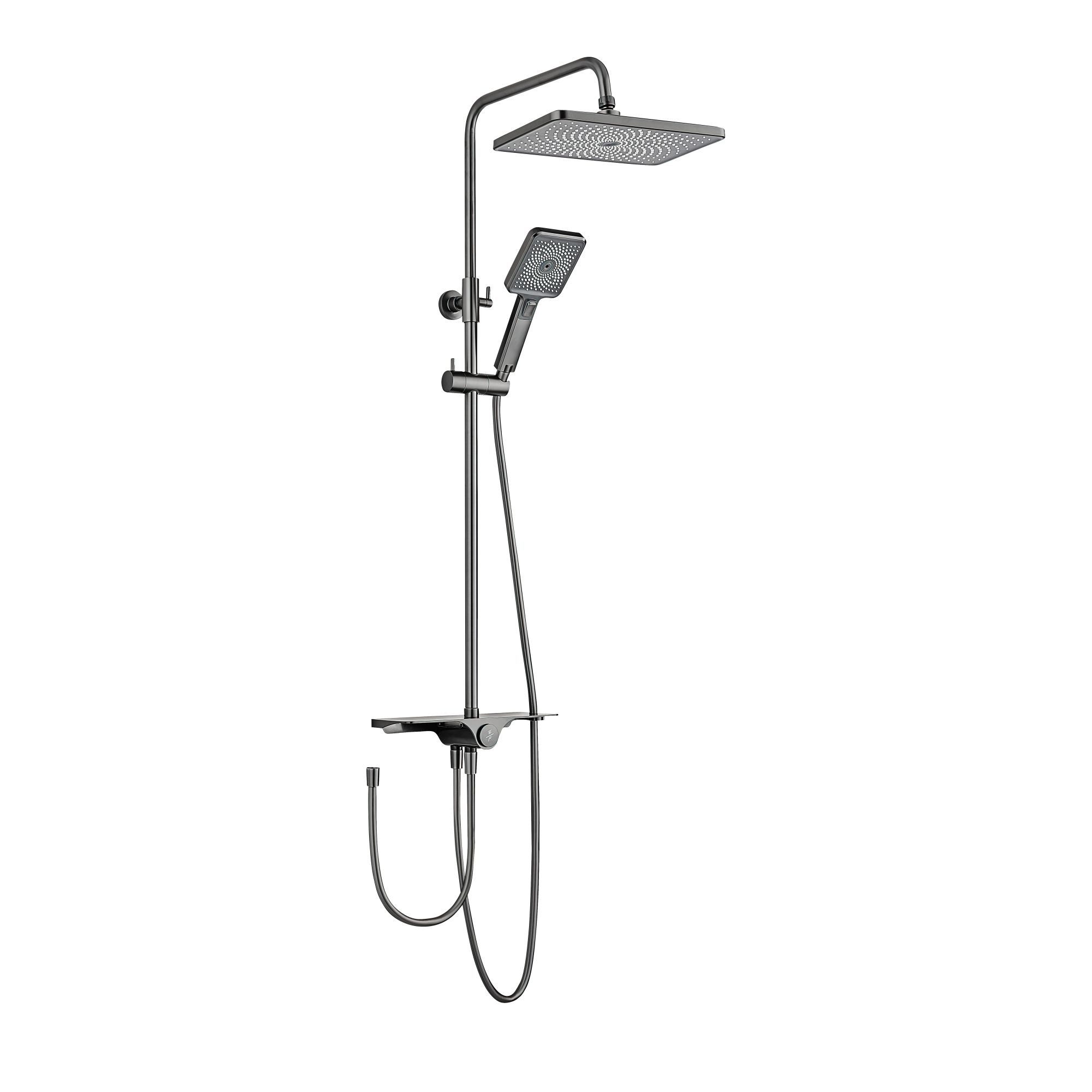 Das VERINA Duschsystem mit Ablage aus der SCHÖNER WOHNEN-Kollektion vereint stilvolles Design mit maximalem Duschkomfort und durchdachter Funktionalität. Erhältlich in den eleganten Farben Chrom, Mattschwarz und Industrial, passt dieses hochwertige Duschsystem perfekt in moderne Badezimmer. Mit einer Höhe von 118 cm, einer Kopfbrause in der Размер 30 x 20 cm und einer flexiblen Handbrause sorgt es für ein angenehmes Duscherlebnis.