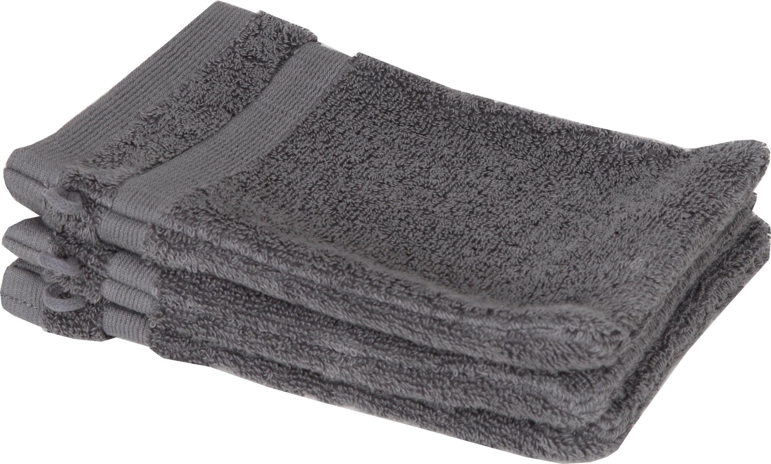 Der graue Farbton fällt eher heller aus als erwartet, ist aber angenehm. Es handelt sich um eine flauschige Qualität, die auch dem Trockner standhält. Ich hätte mir die Waschhandschuhe vielleicht etwas größer gewünscht, bin aber ansonsten zufrieden.