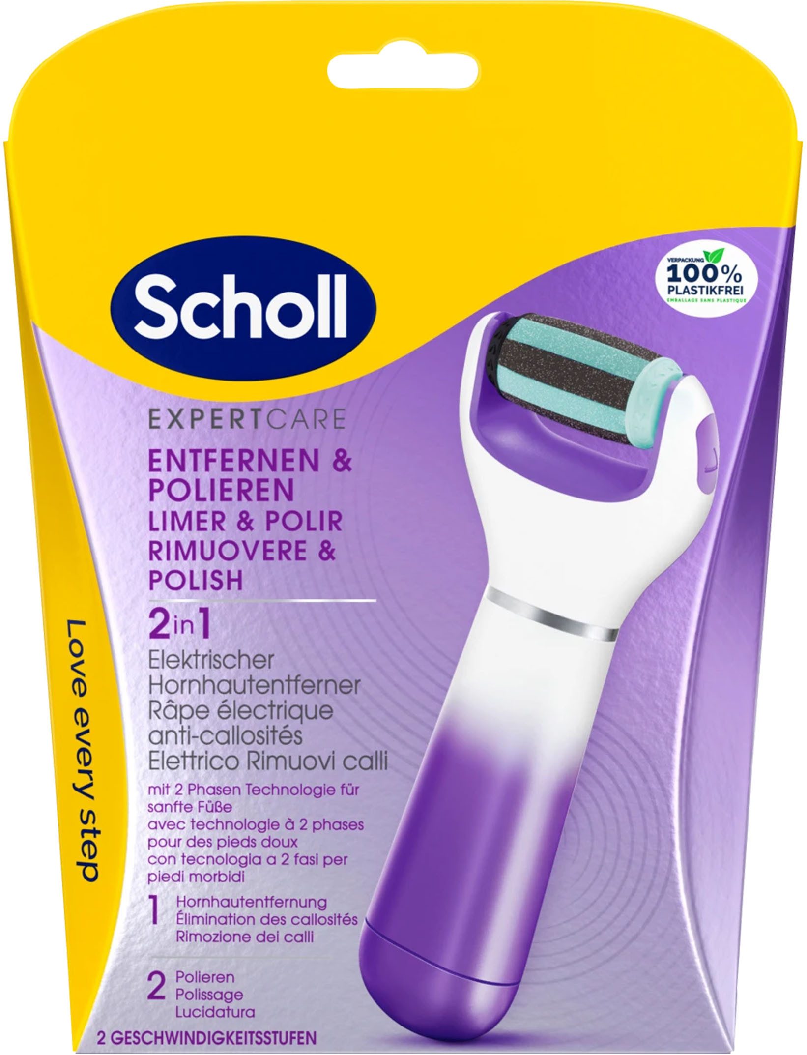 Anwendung | Gebrauchsanweisung1. Entfernen Sie den Scholl Expert Care 2-in-1 File & Smooth Fußschaber aus der Verpackung. 2. Reinigen Sie alle abnehmbaren Teile mit warmem Seifenwasser. 3. Legen Sie eine Schleifrolle mit Schleifkopf. 4. Schalten Sie das Gerät ein, um die gewünschte Geschwindigkeit einzustellen. 5. Gehen Sie vorsichtig über raue, trockene Bereiche mit den Füßen. 6. Nach der Verwendung bitte warmes Spülen entfernen. 7. Kühl und trocken lagern. |
