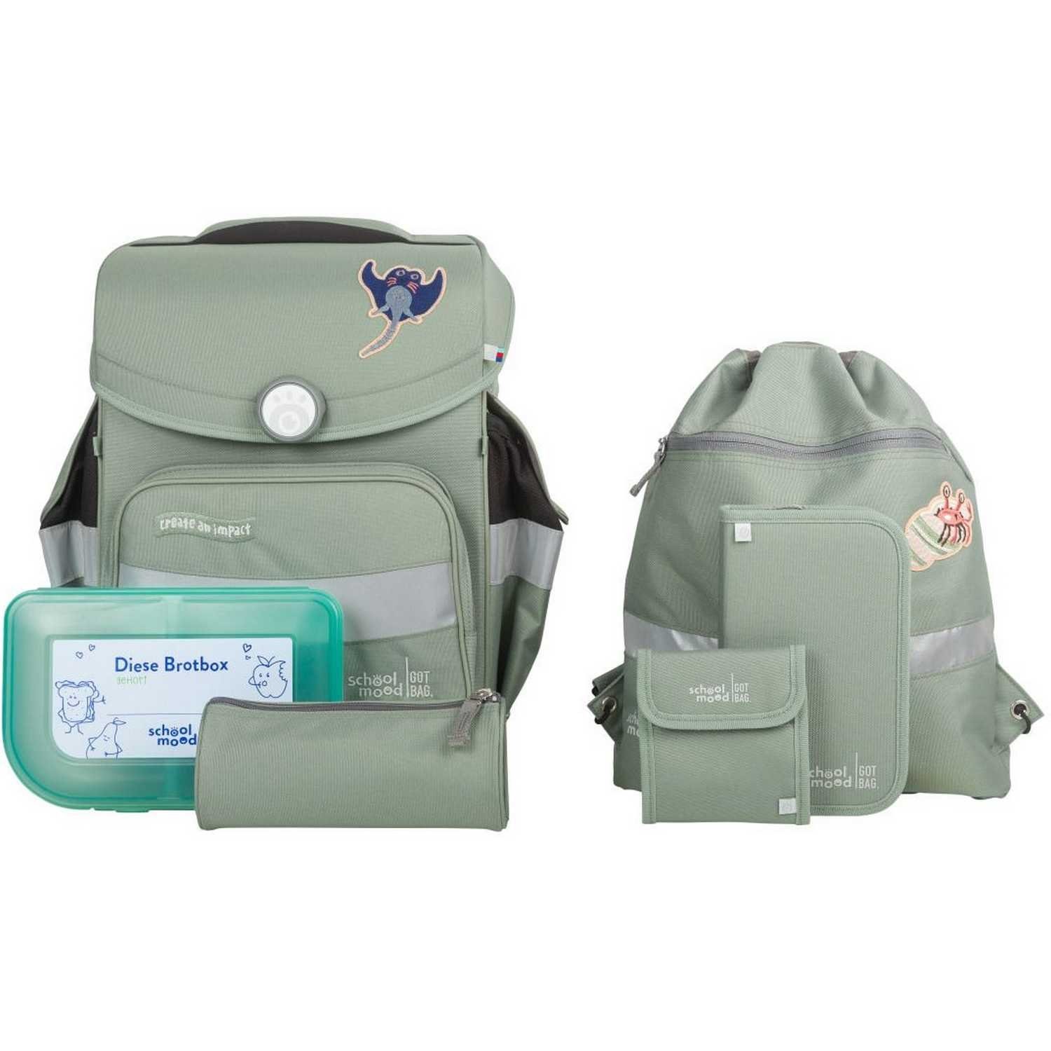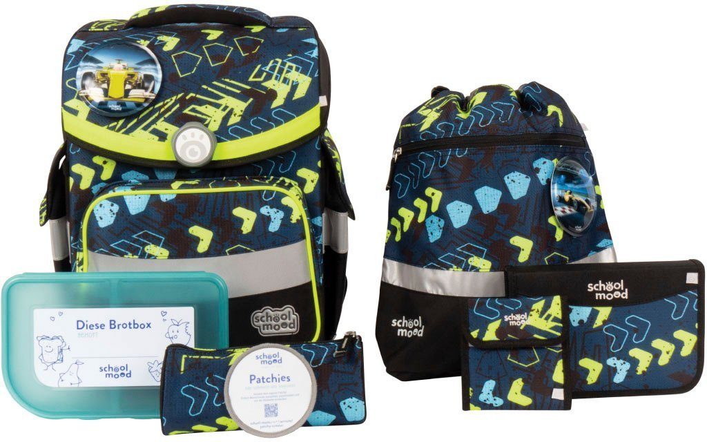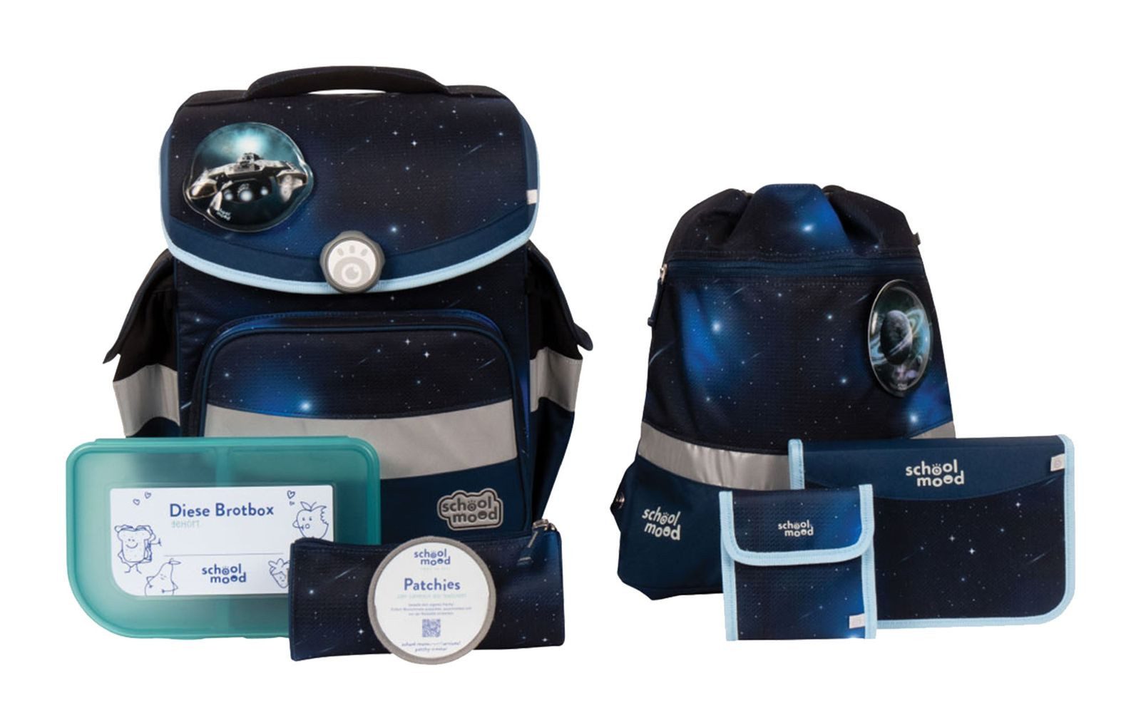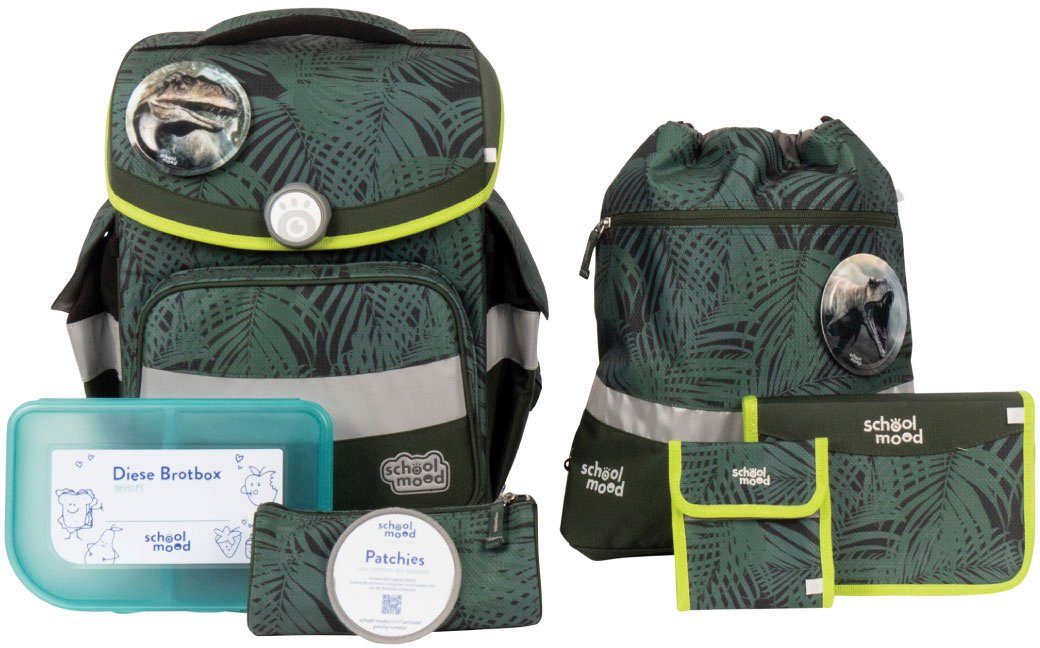 Das Rundum-Sorglos-Paket erhalten Sie mit diesem School-Mood-Set. Dieses Timeless Schulranzen-Set 7-teilig besitzt alles, was Ihr Grundschüler braucht. Denn Schulranzen, Mäppchen, Schlampermäppchen, Sportbeutel, Brustbeutel und Brotdose sind in diesem Set enthalten. Das kindgerechte und süße Muster lässt Kinderaugen strahlen. Auch Rückenschonung und Sichtbarkeit wurden nicht vergessen. Seine reflektierenden Elemente lassen Ihr Kind sichtbar werden und das ergonomische Tragesystem unterstützt den Rücken Ihres Schätzchens. Zudem imponiert bei diesem Timeless Schulranzen-Set 7-teilig auch die coole Ausstattung, wie das Thermofach, in das die Brotdose von School-Mood perfekt hinein passt. Hier gibt es ein enormes Platzangebot und gleichzeitig ist der Schulranzen super leicht und angenehm zu tragen. Die Patchies und auch der Sportbeutel lassen sich super leicht am Rucksack befestigen. An diesem Schulranzen-Set 7-teilig von School-Mood wird Ihr Kind lange Freude haben.