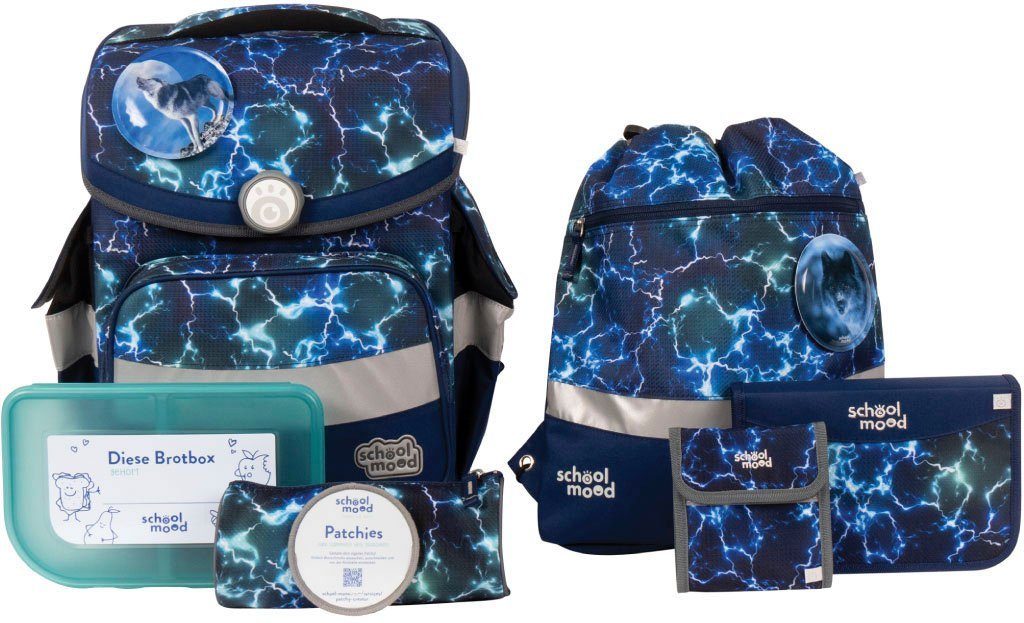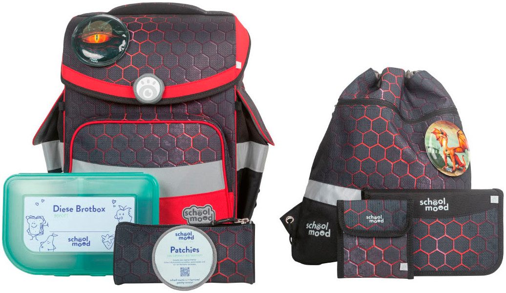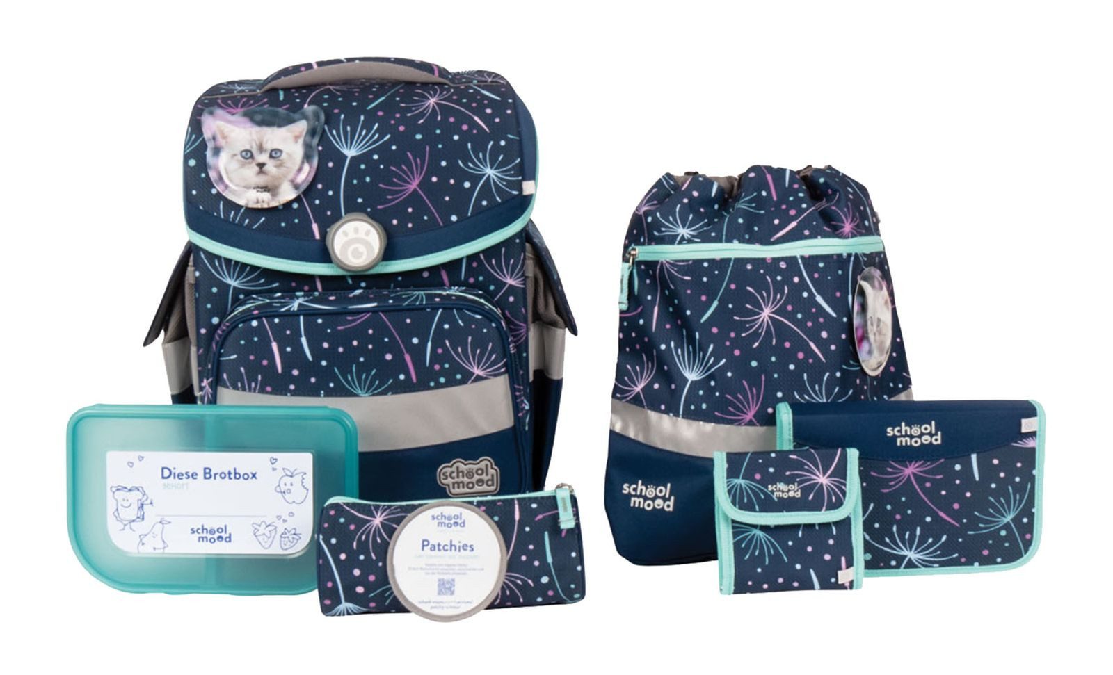Das Rundum-Sorglos-Paket erhalten Sie mit diesem School-Mood-Set. Dieses Timeless Schulranzen-Set 7-teilig besitzt alles, was Ihr Grundschüler braucht. Denn Schulranzen, Mäppchen, Schlampermäppchen, Sportbeutel, Brustbeutel und Brotdose sind in diesem Set enthalten. Das kindgerechte und süße Muster lässt Kinderaugen strahlen. Auch Rückenschonung und Sichtbarkeit wurden nicht vergessen. Seine reflektierenden Elemente lassen Ihr Kind sichtbar werden und das ergonomische Tragesystem unterstützt den Rücken Ihres Schätzchens. Zudem imponiert bei diesem Timeless Schulranzen-Set 7-teilig auch die coole Ausstattung, wie das Thermofach, in das die Brotdose von School-Mood perfekt hinein passt. Hier gibt es ein enormes Platzangebot und gleichzeitig ist der Schulranzen super leicht und angenehm zu tragen. Die Patchies und auch der Sportbeutel lassen sich super leicht am Rucksack befestigen. An diesem Schulranzen-Set 7-teilig von School-Mood wird Ihr Kind lange Freude haben.