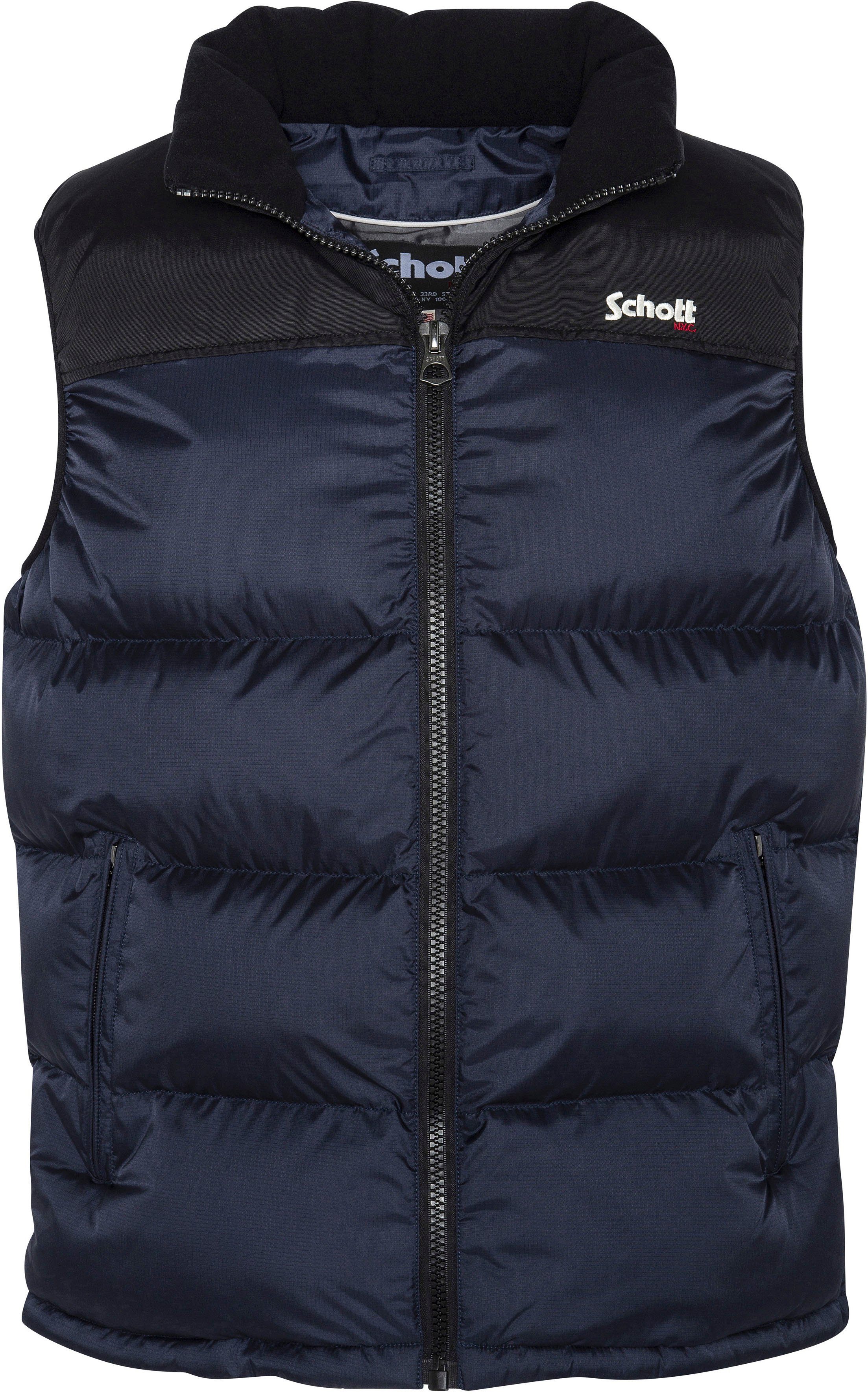 Mit der Steppweste von Schott NYC liegst du richtig. Für ein dekoratives Detail sorgt der Logoschriftzug. Der Schnitt der Steppweste ist hüftlang und gerade, sodass du dich rundum wohl und nicht eingeengt fühlst. Mit den eingelassenen Taschen sind das Smartphone oder Kleingeld sicher verstaut.