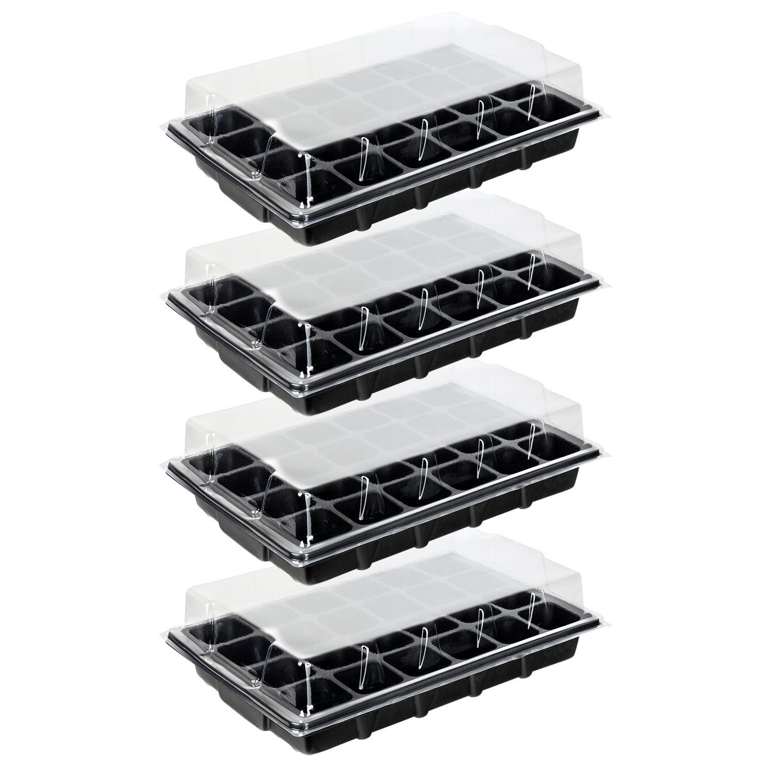 Frühbeet Schramm® 4 Stück Anzucht Set Gewächshaus Anzucht Schale Töpfe Zimmergewächshaus 38,5 x 24 x 7 cm für 96 Anzuchttöpfe Anzuchtset Mini-Gewächshaus schwarz