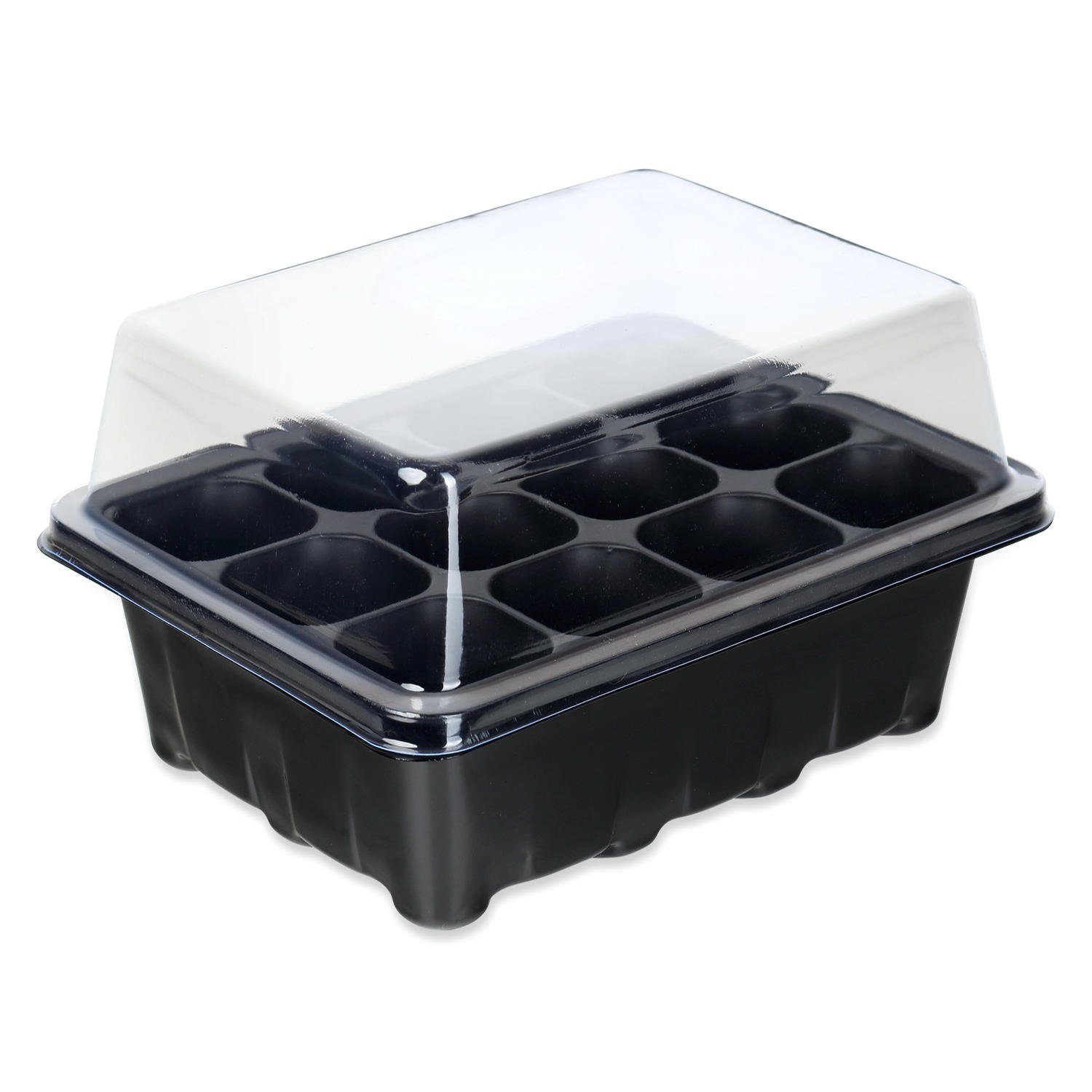 Frühbeet Schramm® Anzucht Set Gewächshaus Anzucht Schale Töpfe Zimmergewächshaus 18,5 x 10 x 14,5 cm für 12 Anzuchttöpfe Anzuchtset Mini-Gewächshaus schwarz