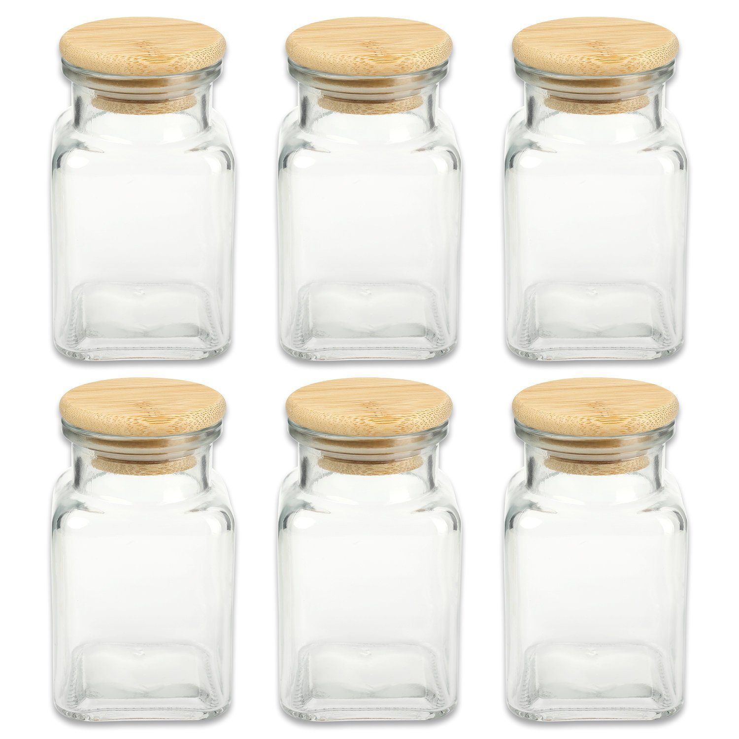 Schramm Gewürzbehälter Schramm® Gewürzgläser 150 ml quadratisch 5,5 x 5,5 x 10 cm mit Bambus Verschluss inkl. Etiketten wählbar 6, 12 oder 24 Stück Aufbewahrungsgläser, (6 Stück, 6-tlg)
