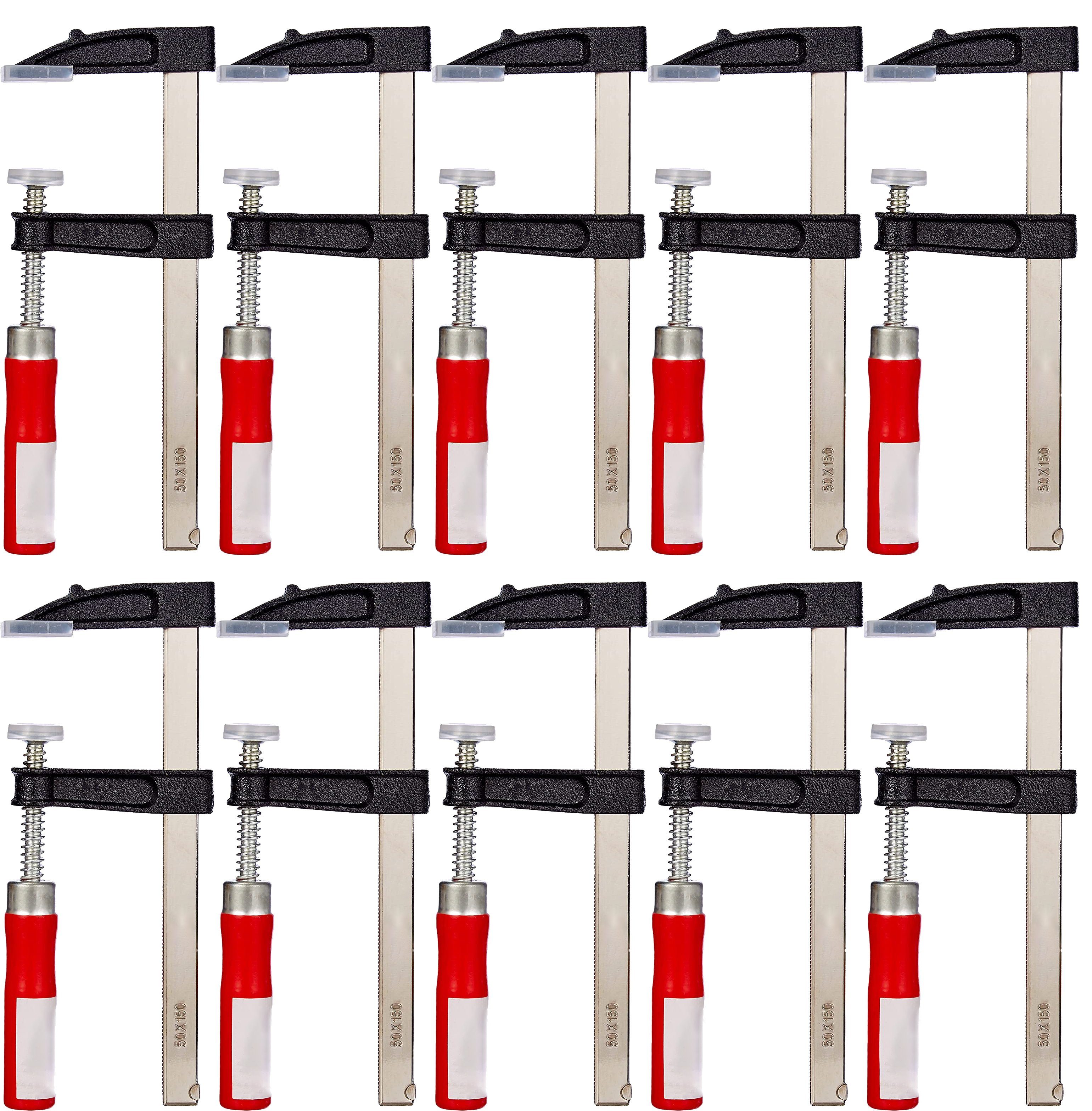 Um Druckstellen auf den Werkstücken zu vermeiden ist diese Schraubzwinge mit Kunststoffschutzbacken ausgestattet