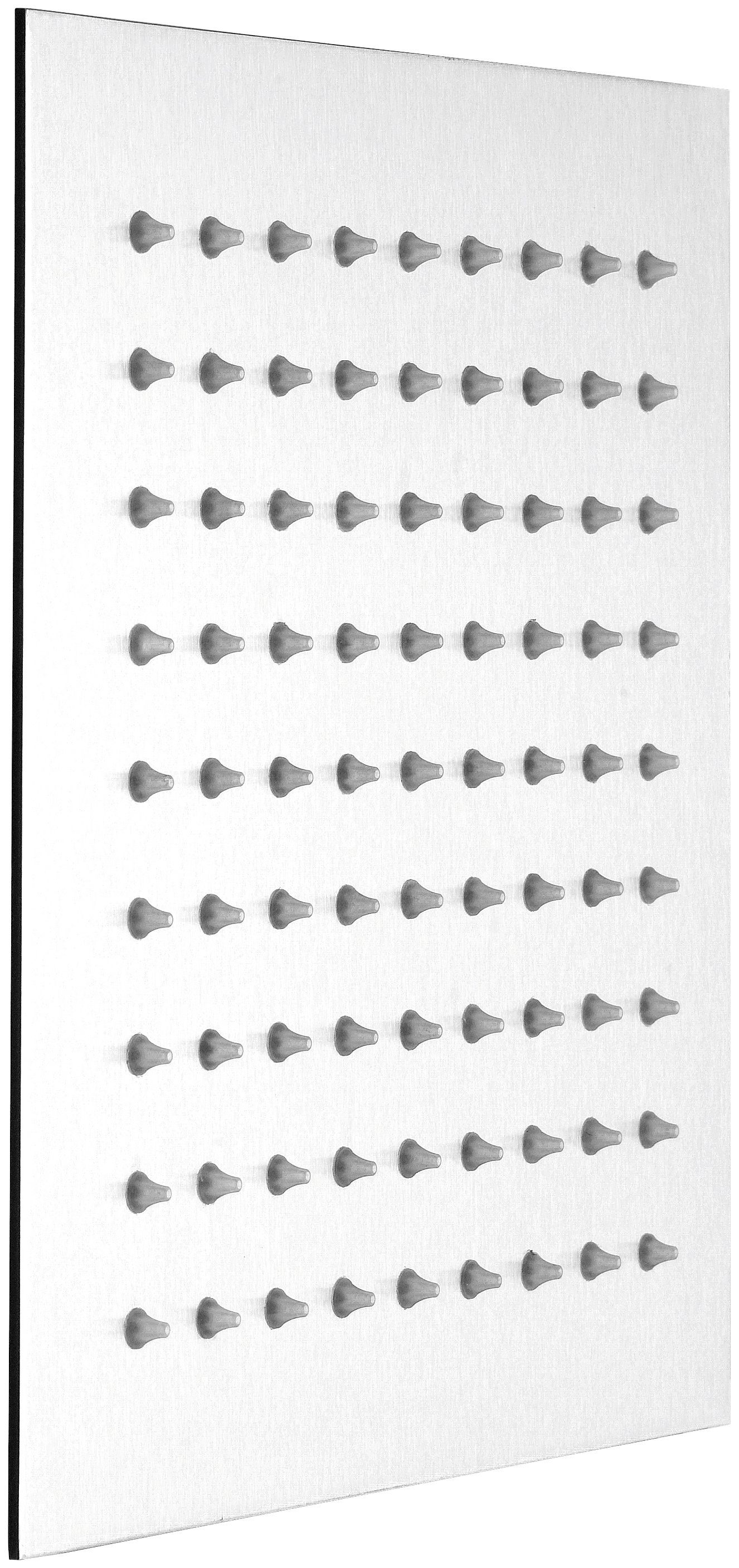Das Duschset verfügt über eine hochwertige Edelstahl Regendusche. Die sehr flache Ausführung verhindert die Ansammlung von Wasserrückständen innerhalb der Kopfbrause