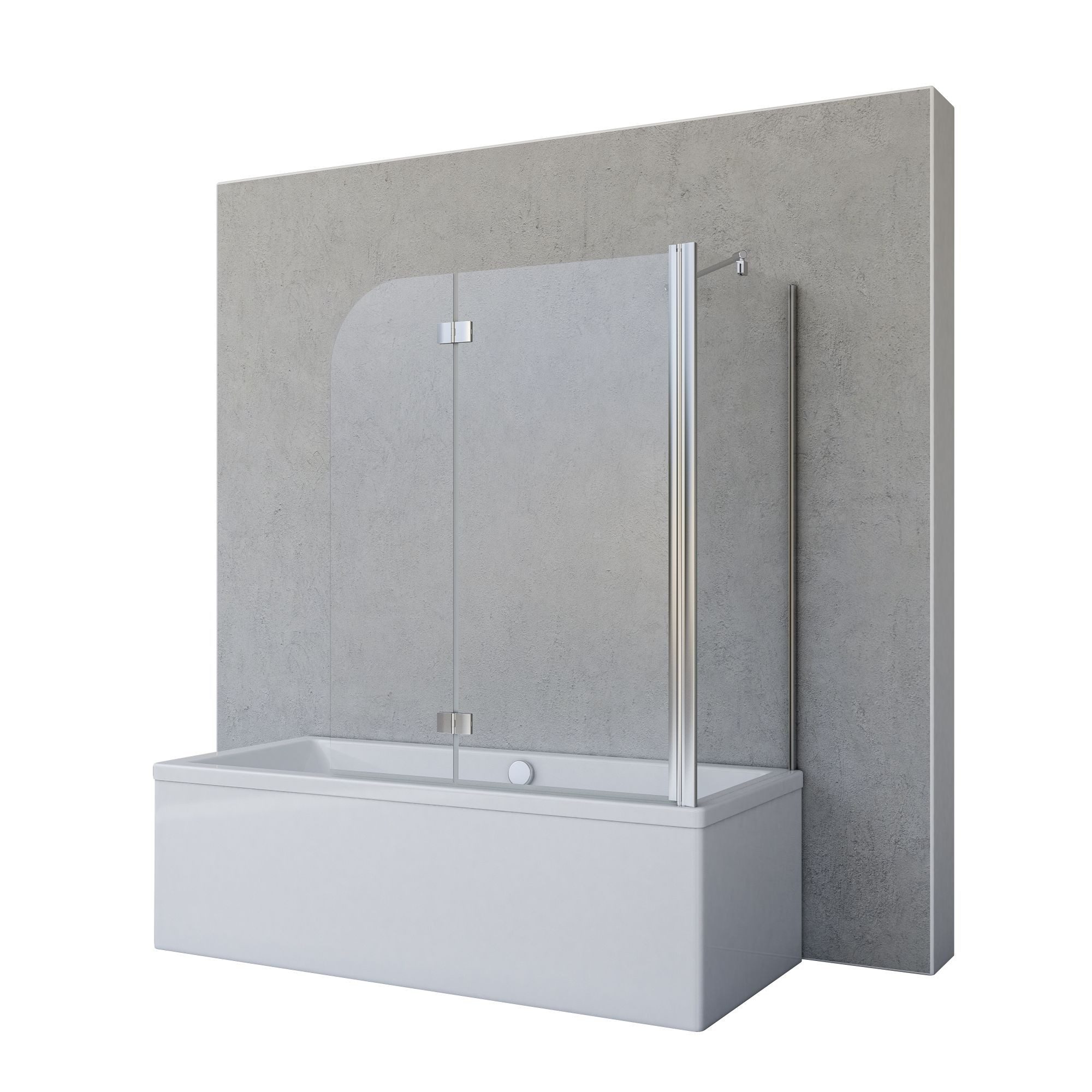 Lieferumfang | 1x 2-tlg. Faltwand 1x Festelement Zubehör Schrauben- und Abdeckkappenset Montageanleitung Montagematerial zum Bohren |