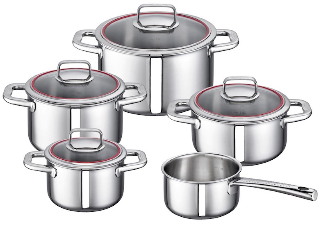 Die Schulte-Ufer-Kollektion Valentina bietet Töpfe, die rundherum kochen. Dank des hochwertigen 3-Schicht-Materials aus einer Schicht Edelstahl, einer Schicht Aluminium und einer weiteren Schicht Edelstahl verbreiten die Töpfe besonders schnell und effizient die Wärme