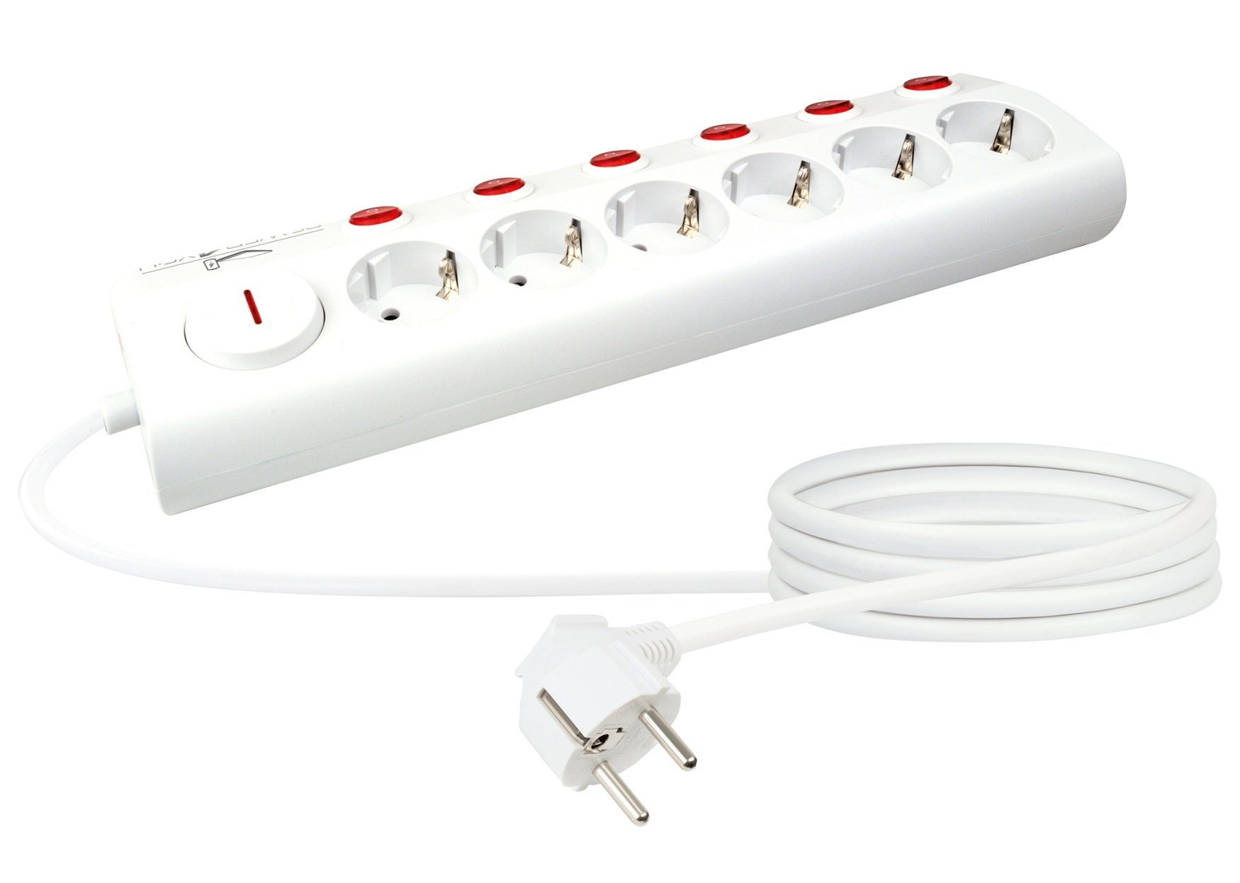 Mit der 6-fachen Steckdosenleiste von SCHWAIGER® erweitern Sie ganz einfach Ihre haushaltsüblichen Steckdosen um 6 weitere Haushaltssteckdosen (Typ F). Die Mehrfachsteckdose verfügt dabei sowohl über einen Hauptschalter zum stromsparenden Ein- und Ausschalten aller angeschlossenen Geräte auf einmal, als auch über 6 separate Schalter für jede einzelne Steckdose. So können Sie Ihre Geräte individuell mit Strom versorgen und gleichzeitig überflüssigen Stand-by Verbrauch nicht benötigter Geräte vermeiden.