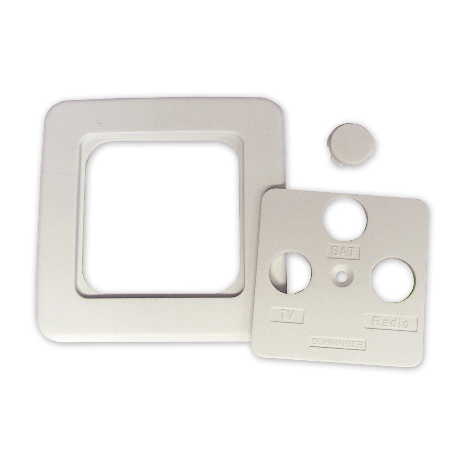 Dieses SCHWAIGER® Set, bestehend aus Abdeckrahmen mit Abdeckplatte, kann auf 2- oder 3-Loch Anschlussdosen montiert werden.