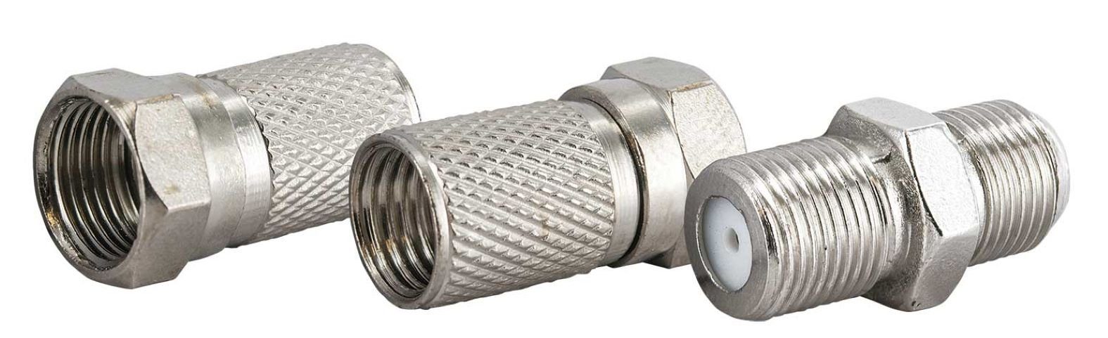 Dieses SCHWAIGER® Komplettset beinhaltet zwei F-Stecker, die für die Installation an einem Koaxialkabel geeignet sind, und einem F-Verbinder, der als Zwischenstück zur Verlängerung von SAT Anschlusskabeln mit F-Steckern dient.