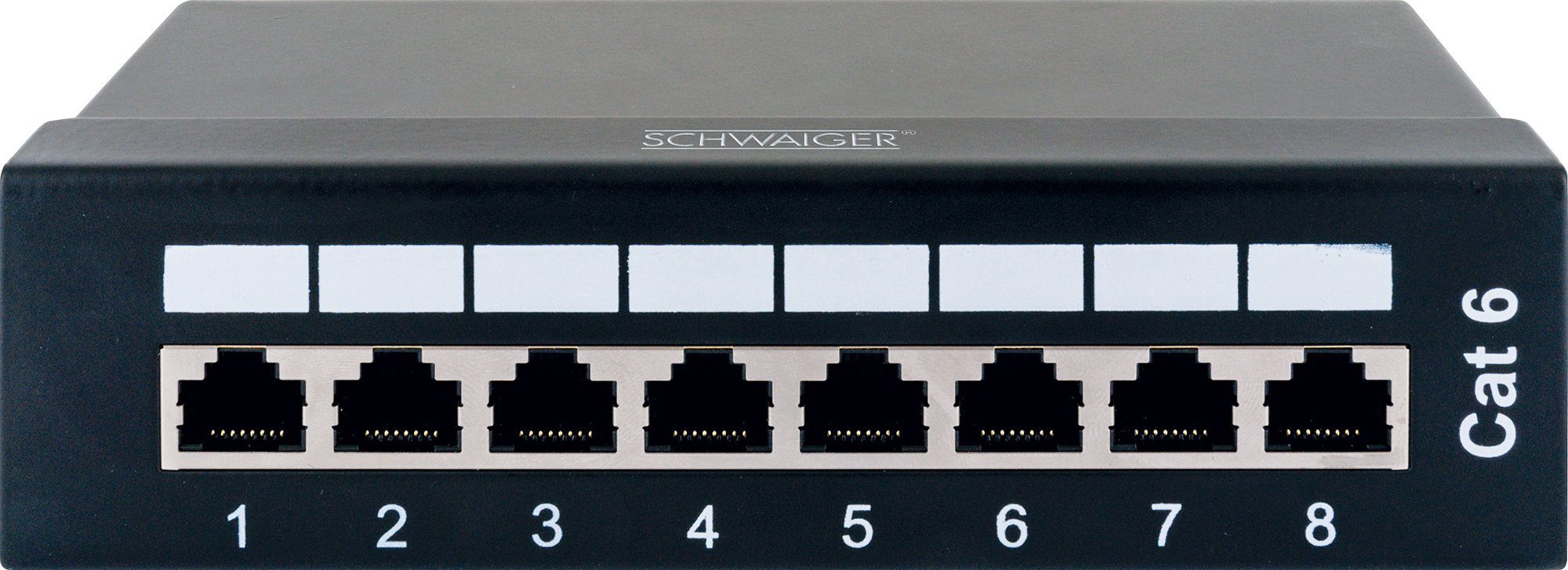 Mit diesem Desktop Patchpanel von SCHWAIGER® erhalten Sie ein ideales Netzwerk Verteilerfeld für den privaten und auch professionellen IT Bereich. Das Patchpanel besitzt an der Vorderseite 8x RJ45 Netzwerkbuchsen, über diese können Sie schnell und einfach eine Vielzahl von Endgeräten per Netzwerkkabel anschließen. Die RJ45-Anschlüsse sind durchnummeriert. An der Rückseite des Patchpanels können Sie unkompliziert Netzwerk Verlegekabel über LSA anschließen.