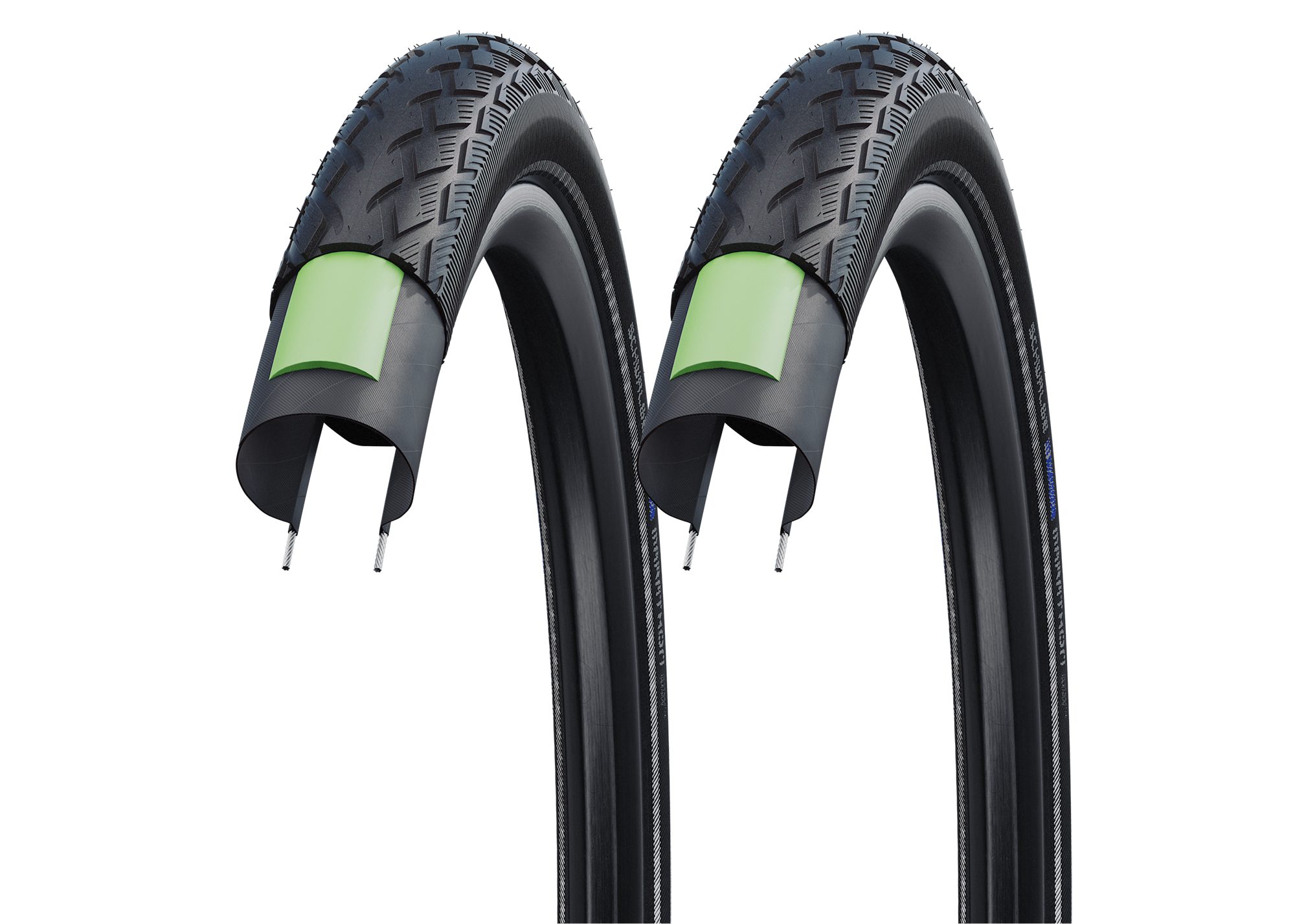 Tourenreifen mit GreenGuard Pannenschutz aus hochelastischem Naturkautschuk. Die Anti-Aging-Seitenwand erträgt die typischen Überlastungen durch zu geringen Luftdruck deutlich länger, bevor sie hässliche Risse bekommt.