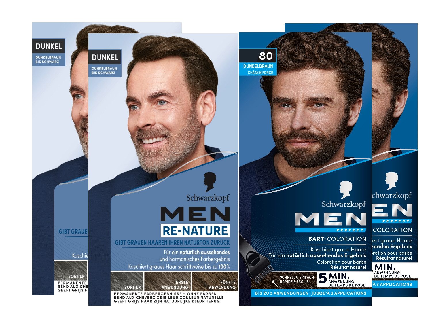 Lieferumfang | 2x 30 ml Men Perfect Bartfarbe + 2x 145 ml Men Re-Nature Haarfarbe |