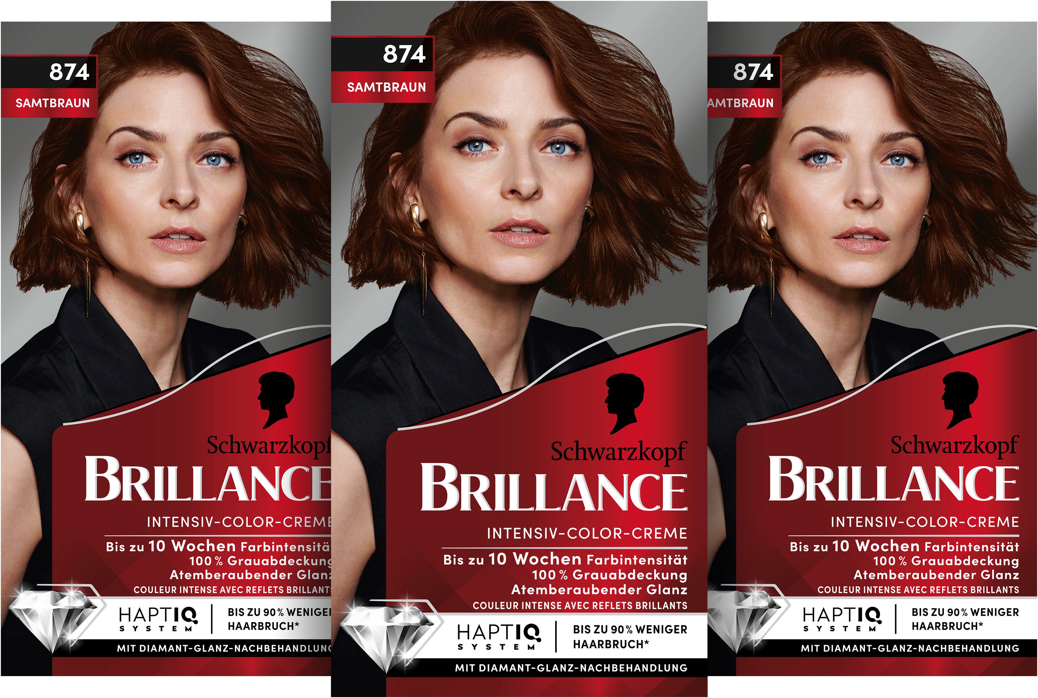 BRILLANCE Intensiv-Color-Creme – Ein Haarfarben-Statement mit Diamant-Glanz. Dank der SCHWARZKOPF Farbexpertise bietet BRILLANCE einzigartig intensive Haarfarben in professioneller Qualität für zu Hause. Die hochleistungsfähige Formel sorgt für langanhaltende Farbintensität bis zu 10 Wochen und für bis zu 100% Grauabdeckung. Das Haar wird mit der Diamant-Glanz-Nachbehandlung gepflegt - Für atemberaubenden Glanz.