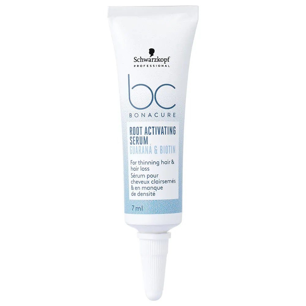 Das speziell für schwaches und schütter werdendes Haar entwickelte Schwarzkopf BC Bonacure Root Activating Serum reduziert nicht pathologischen Haarausfall. Die einzigartige Kombination von Inhaltsstoffen in der schnell einziehenden, frei von Sulfaten, Silikonen, Parabenen und veganen Formulierung mit Superfood-Komplex aktiviert die Haarwurzeln und stimuliert die Kopfhaut. Angereichert mit Guaraná und Biotin sorgt es für mehr Fülle und verbessert gleichzeitig die Qualität und Vitalität des Haares. Die Kopfhaut wird wieder ins Gleichgewicht gebracht und der zukünftige Zustand des Haares wird verbessert. Für die tägliche Anwendung geeignet.
