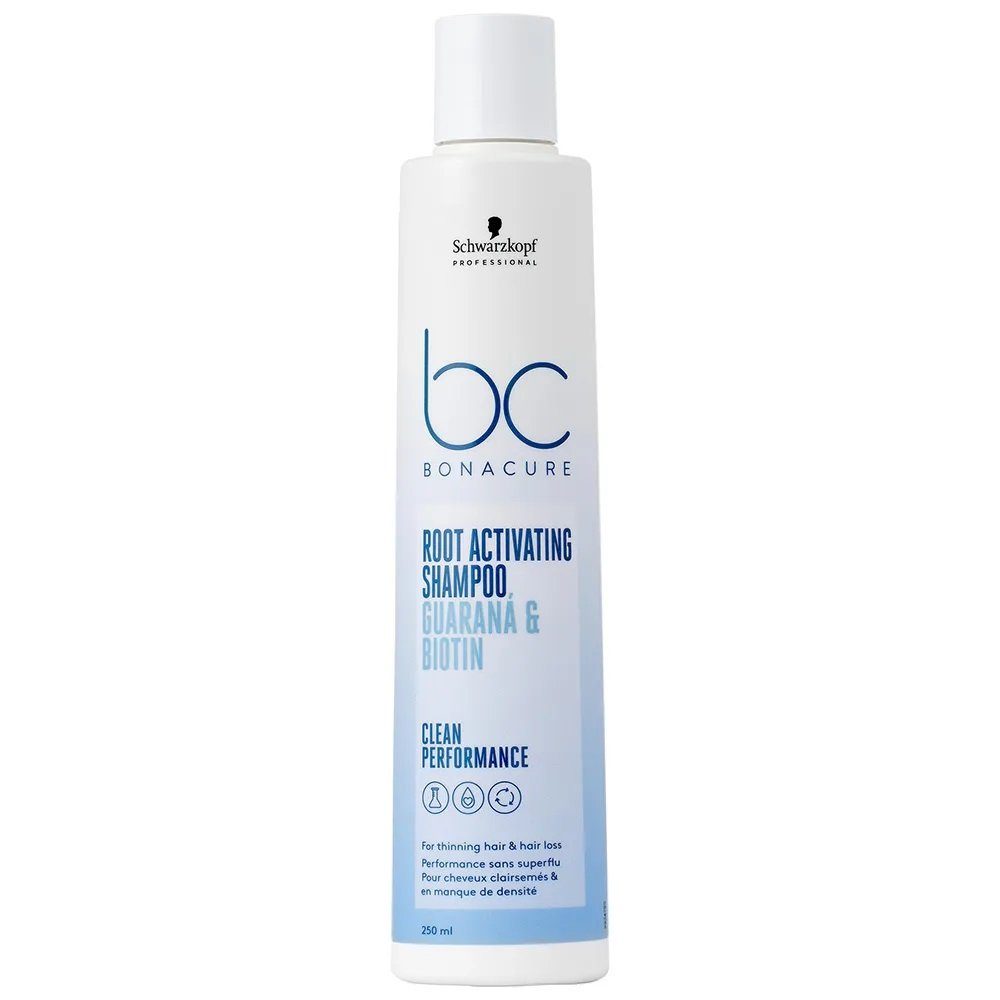 Das speziell für schwaches und schütter werdendes Haar entwickelte Schwarzkopf BC Bonacure Root Activating Shampoo mit seiner sanften Reinigungskraft aktiviert die Haarwurzeln und stimuliert die Kopfhaut, um nicht-pathologischen Haarausfall zu reduzieren und das Haar um bis zu 40% zu stärken. Die pH-neutrale, frei von Sulfaten, Silikonen, Parabenen und vegane Formulierung mit Superfood-Komplex ist angereichert mit Guaraná und Biotin, wodurch die Kopfhaut wieder ins Gleichgewicht gebracht und der zukünftige Zustand des Haares verbessert wird. Für die tägliche Anwendung geeignet.