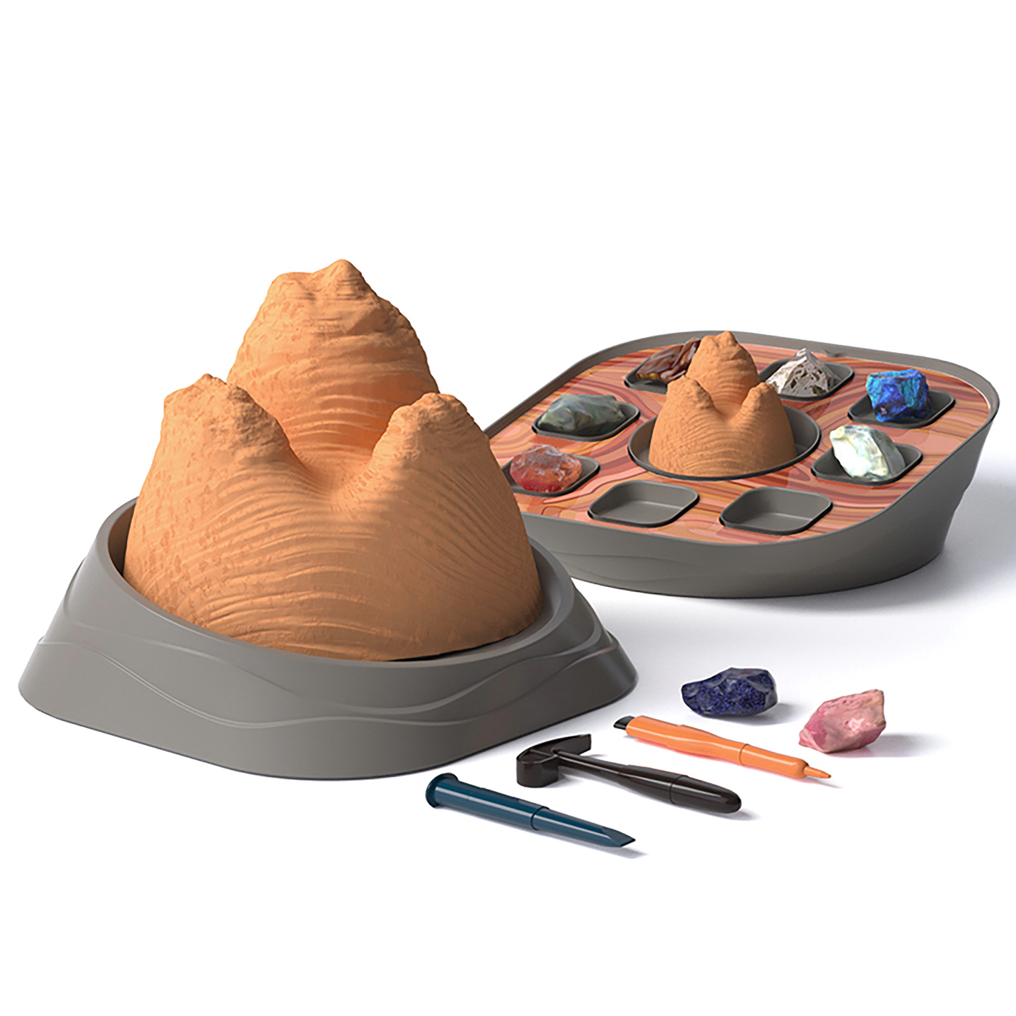 Kindern gehen bei dem Ausgrabungsset Edelsteine „American Wave“ von Science Can auf Schatzsuche und graben wie echte Geolog:innen mit Hammer, Meißel und Bürste wunderschöne Edelsteine aus. Das Besondere: Dabei lernen sie auch noch spannende Naturschauspiele und Naturphänomene dieser Welt kennen.Stück für Stück graben sich Kinder vorsichtig durch den Gesteinsblock und halten die Augen offen nach schimmernden Edelsteinen. Haben sie einen entdeckt, arbeiten sie sich vorsichtig durch die Gesteinsschichten und legen ihn frei. Anschließend analysieren sie die Steine anhand von Farbe, Transparenz, Glanz etc. und dokumentieren ihren Fund wie ein echte Wissenschaftler:innen. Haben sie alle acht Edelsteine gefunden, können sie dank des innovativen Designs des Sockels ihre Sammlung an Edelsteinen auf dessen Rückseite im Kinderzimmer präsentieren und auf der Karte der Weltwunder mehr über den faszinierenden Ausgrabungsort lernen.