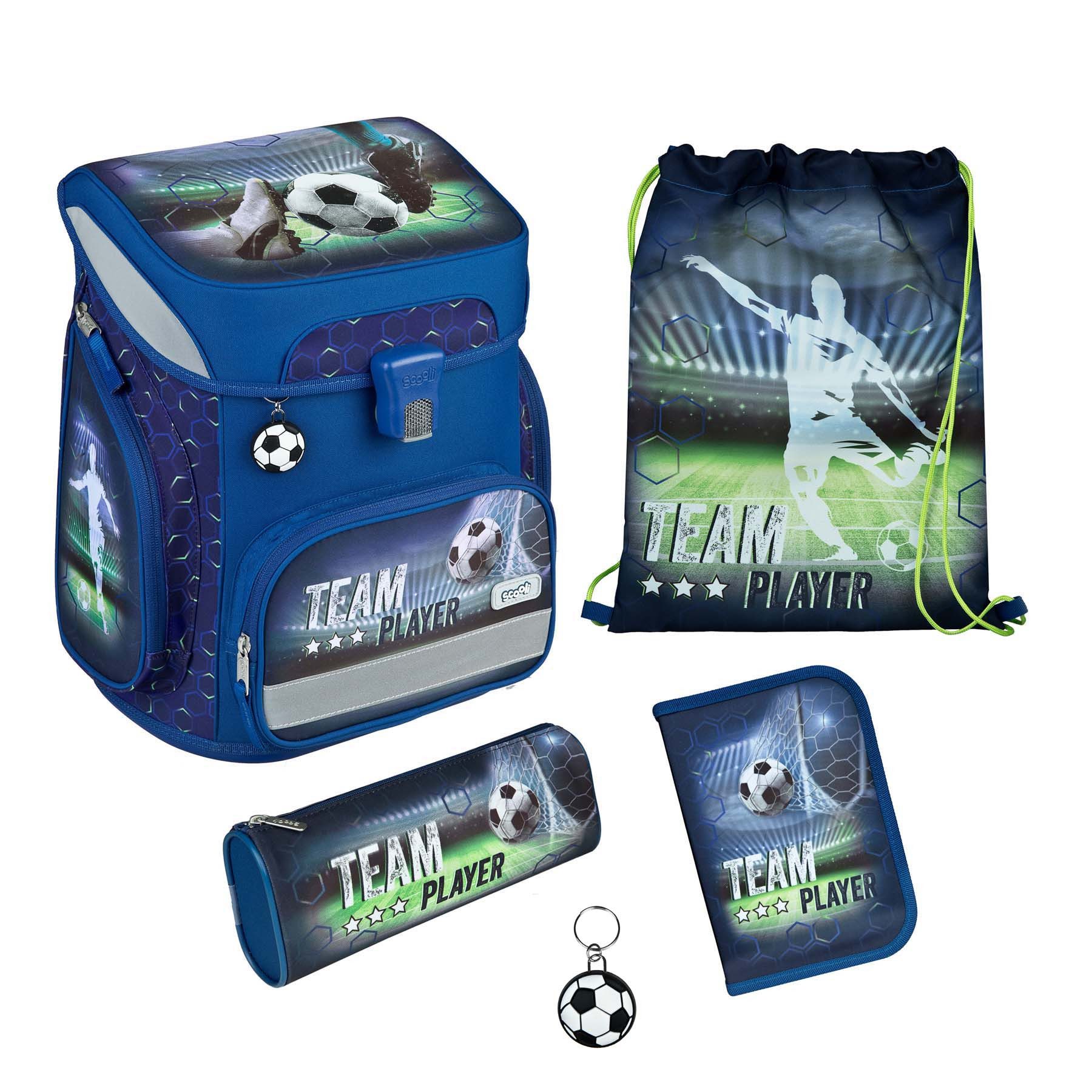 Lieferumfang | Abnehmbarer Schlüsselanhänger, Befülltes Schüleretui mit hochwertigen Eberhard-Faber Buntstiften, Schlamperetui, Schulranzen, Turnbeutel |