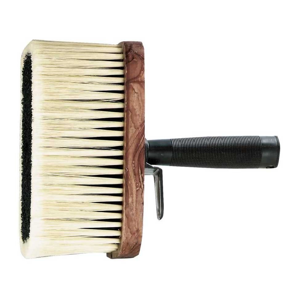 Borsten aus Myhalon - gestanzt, Holzkörper und Kunststoffstiel, Eimerhaken, lösemittelbeständig. Breite: 180 mm, Borstenlänge: 85 mm, Dicke: 80 mm