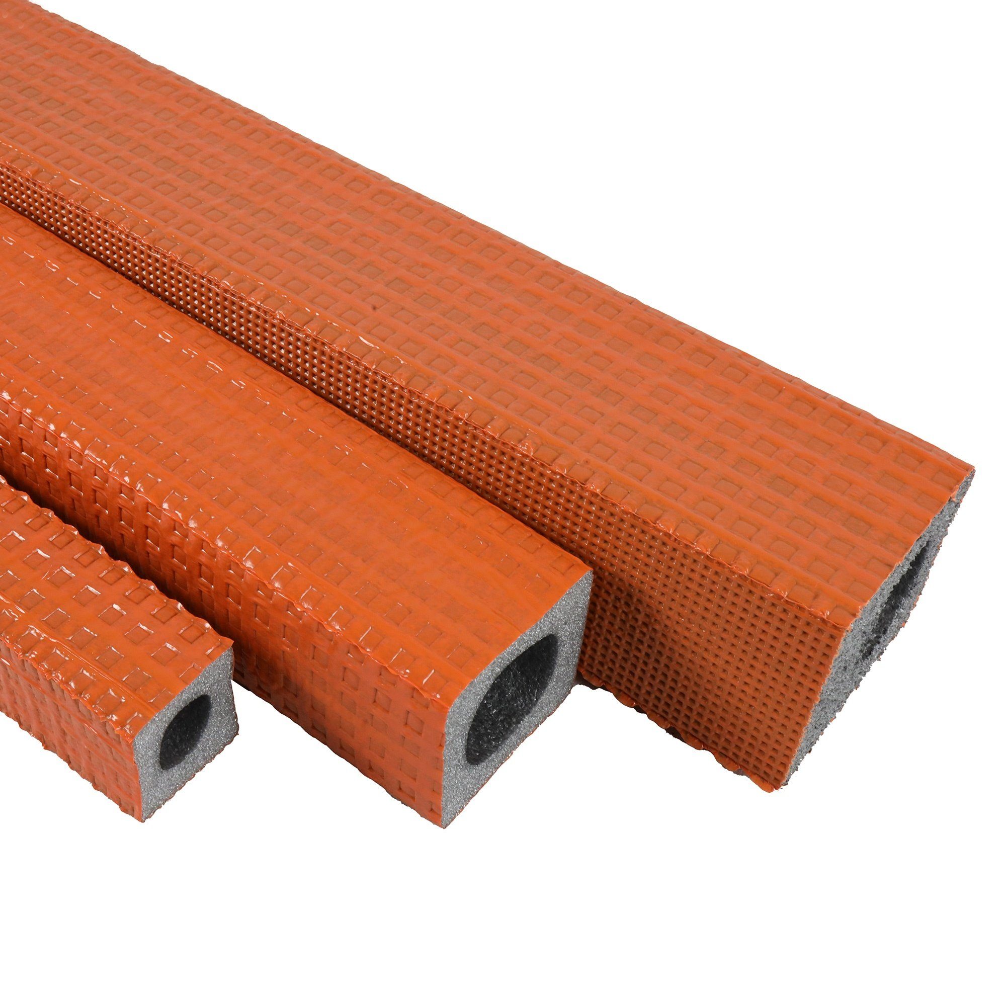 PE Rohrisolierung Fußboden Dämmhülse (eckige Ausführung) aus hochwertigem Polyethylen, die speziell zur Dämmung von Heizungsrohren im Fußbodenaufbau konstruiert wurde. Die platzsparende PE Fußboden Dämmhülse zeichnet sich durch die effektive Minimierung von Energieverlusten aus und bietet mit Ihrer robusten Folienummantelung einen zusätzlichen Schutz gegen mechanische Beschädigungen während der Installation.