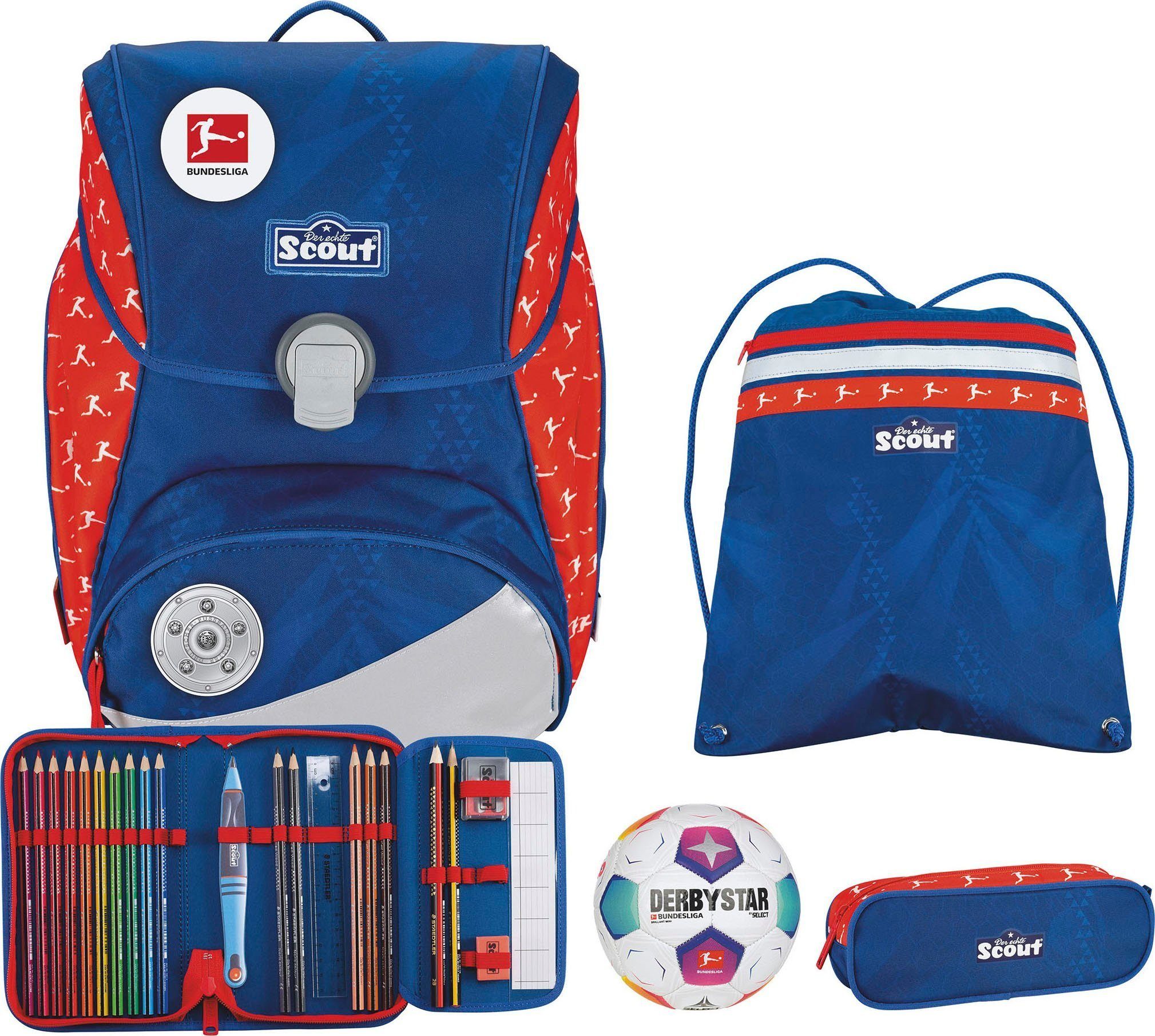 Lieferumfang | 2 magnetische Funny Snaps Move zum individuellen Gestalten des Schulranzens, 23-teiliges Schüleretui mit 1 Seitenklappe, befüllt mit Staedtler-Qualitätsstiften (B/T/H: ca. 12/4/20 cm), Faulenzermäppchen (B/T/H: ca. 21/8/9 cm), Schulrucksack, Turnbeutel (B/H: ca. 37/43 cm) mit separatem Nassfach und Zusatzfach; sowohl von innenbefüllbar, als auch von außen mit Reißverschluss |