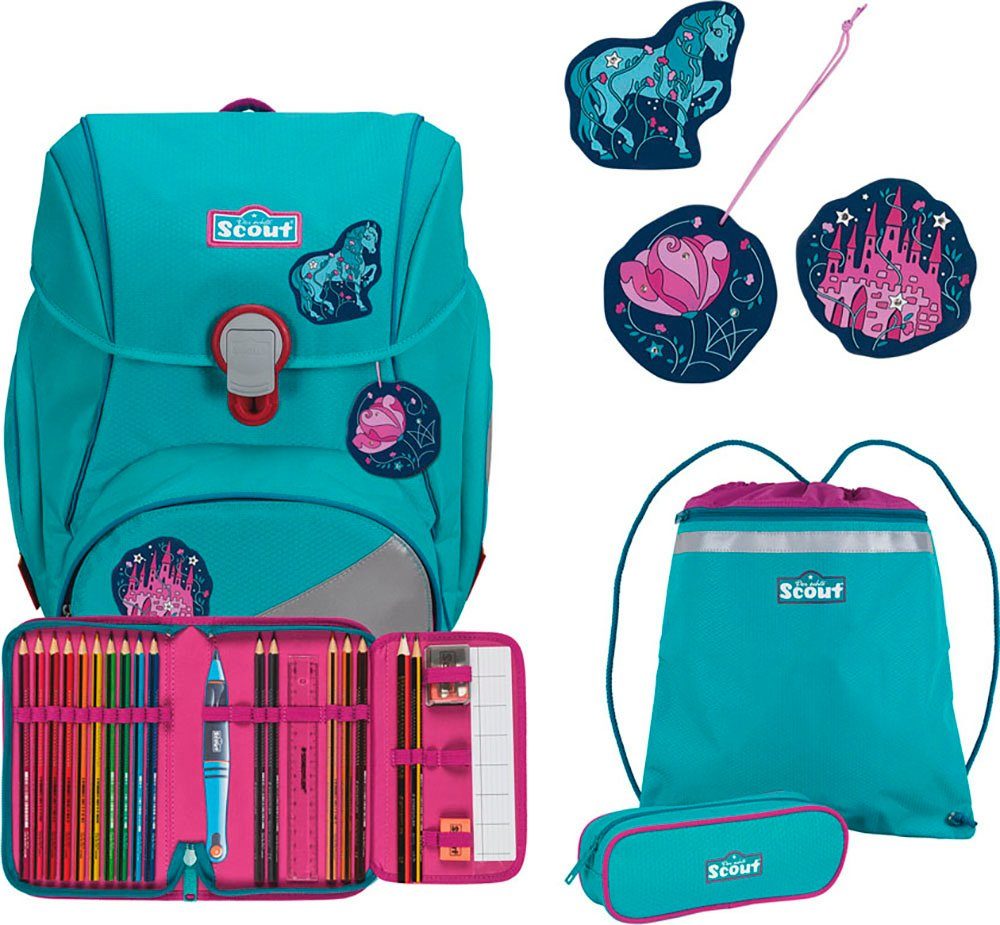 Lieferumfang | 2 magnetische Funny Snaps Move zum individuellen Gestalten des Schulranzens, 23-teiliges Schüleretui mit 1 Seitenklappe, befüllt mit Staedtler-Qualitätsstiften (B/T/H: ca. 12/4/20 cm), Faulenzermäppchen (B/T/H: ca. 21/8/9 cm), Schulrucksack, Turnbeutel (B/H: ca. 37/43 cm) mit separatem Nassfach und Zusatzfach; sowohl von innenbefüllbar, als auch von außen mit Reißverschluss |