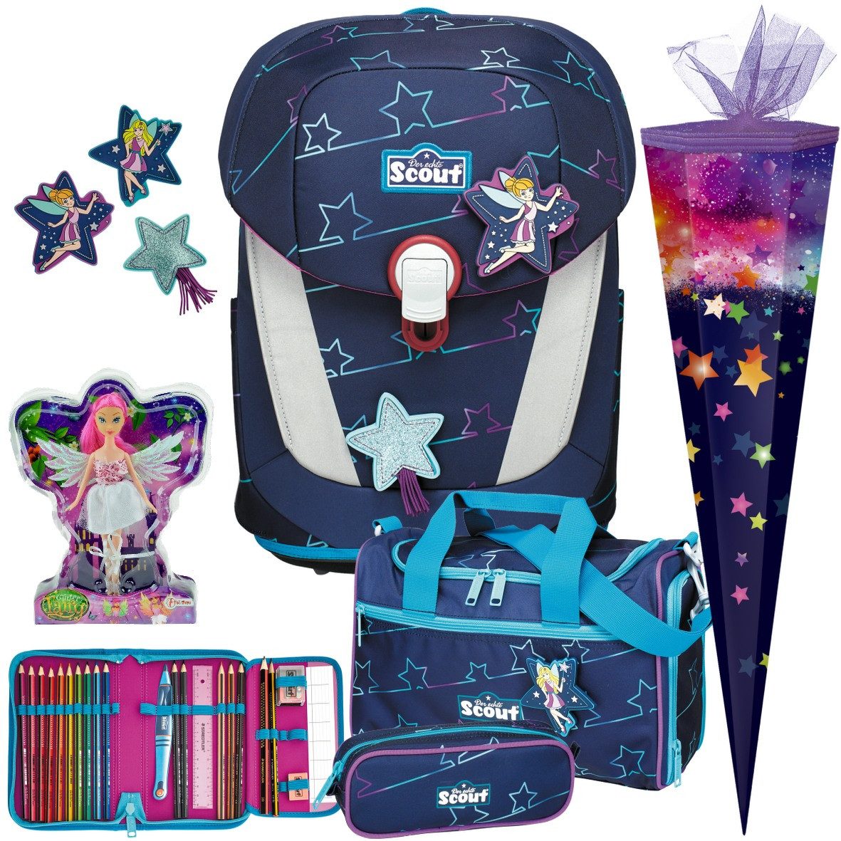 Die Schulranzen von SCOUT zeichnen sich aus durch: Innovatives, höhenverstellbares Tragegurtsystem mit integriertem Hüftgurt – entlastet den Körper in jeder Wachstumsphase durch Gewichtsverlagerung auf die Hüfte. Hüftgurt, beweglich angebracht und abnehmbar, für kraftsparenden Tragekomfort. Integrierter, höhenverstellbarer Brustgurt hält die Tragegurte auch in Bewegung auf den Schultern. Lagekontrollriemen für optimalen Sitz im Schulterbereich. Bequeme, mit atmungsaktivem Mesh gepolsterte, S-förmige Tragegurte in optimaler Breite (4,5 cm) und Длина (mindestens 50 cm) mit Sicherheitsreflektoren. Körpergerecht geformtes Rückenpolster, konstruiert auf der Basis von über 600 Rückenprofilen von Kindern zwischen 6 und 10 Jahren, atmungsaktiv mit Mesh gepolstert. Superleicht zu bedienendes Magnet-Rasterschloss, höhenverstellbar für flexible Anpassung des Innenraumvolumens. Geräumiges unterteiltes Innenfach für optimale Organisation und rückenfreundliches Packen. Geräumige Vortasche, ideal für Ess-Box oder Etui. Großvolumige Seitentaschen mit Ablauföffnung für sicheren Getränketransport. Weit zu öffnender Deckel mit Stundenplan. Für die Kollektion Scout Genius setzen wir aus PET-Flaschen recycelte Polyesterfasern ein, sowohl für das Außengewebe als auch für das Futter – ein aktiver Beitrag zu mehr Umweltschutz und Müllvermeidung. Все Grundsets enthalten: hochwertigen MARKEN-SCHULRANZEN von SCOUT mit 2 Funny Snaps und 1 Anhänger(mit den dekorativen 3D-Patches zum Wechseln kann der Schulranzen immer wieder neu gestaltet werden); einer FEDERMAPPE mit 1 Klappe gefüllt (ohne Füller); einem SCHLAMPERETUI und einem SPORTBEUTEL mit Kordelzug, Vortasche mit Reissverschluss und Reflektionsstreifen.