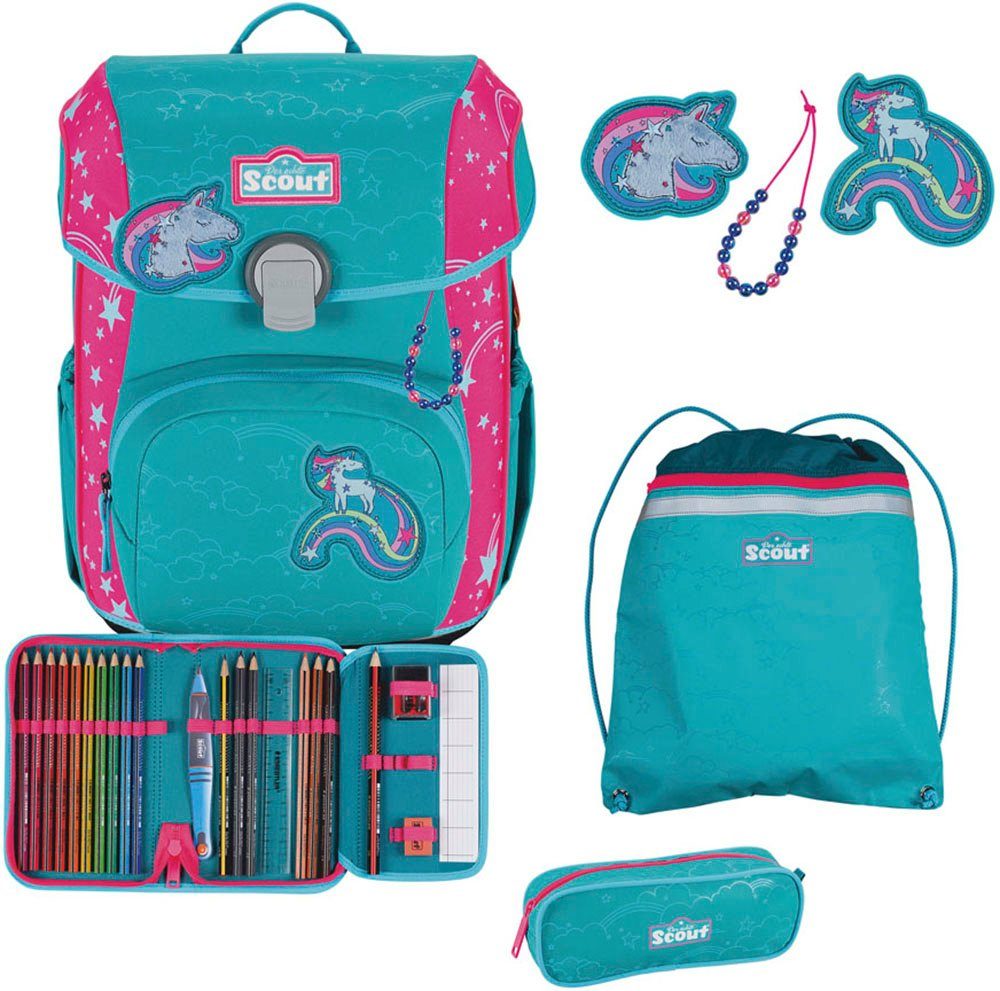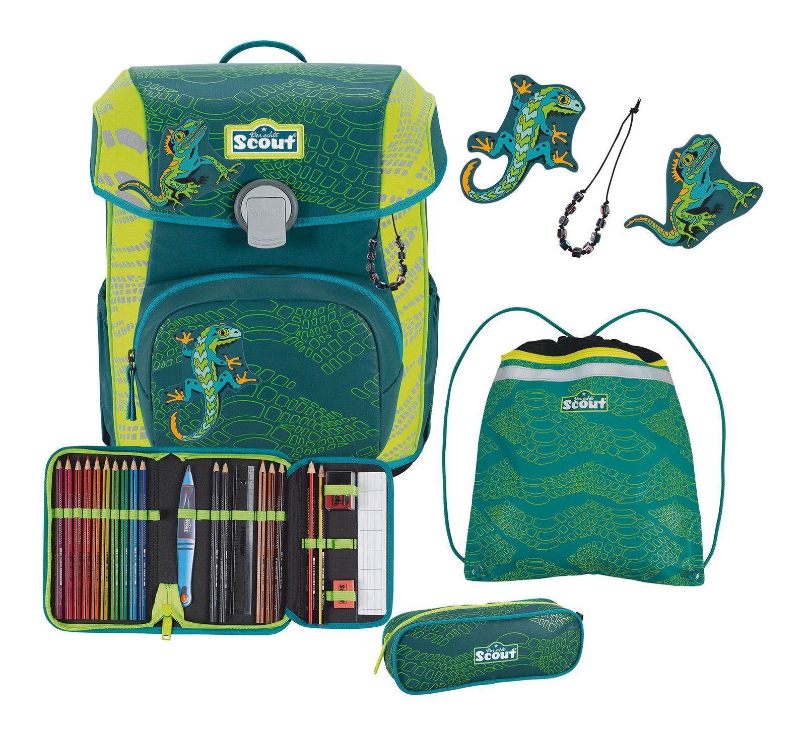 Lieferumfang | 1 Anhänger, 2 magnetische Funny Snaps Move zum individuellen Gestalten des Schulranzens, 23-teiliges Schüleretui mit 1 Seitenklappe, befüllt mit Staedtler-Qualitätsstiften (B/T/H: ca. 12/4/20 cm), Faulenzermäppchen (B/T/H: ca. 21/8/9 cm), Schulrucksack, Turnbeutel (B/H: ca. 37/43 cm) mit separatem Nassfach und Zusatzfach; sowohl von innenbefüllbar, als auch von außen mit Reißverschluss |