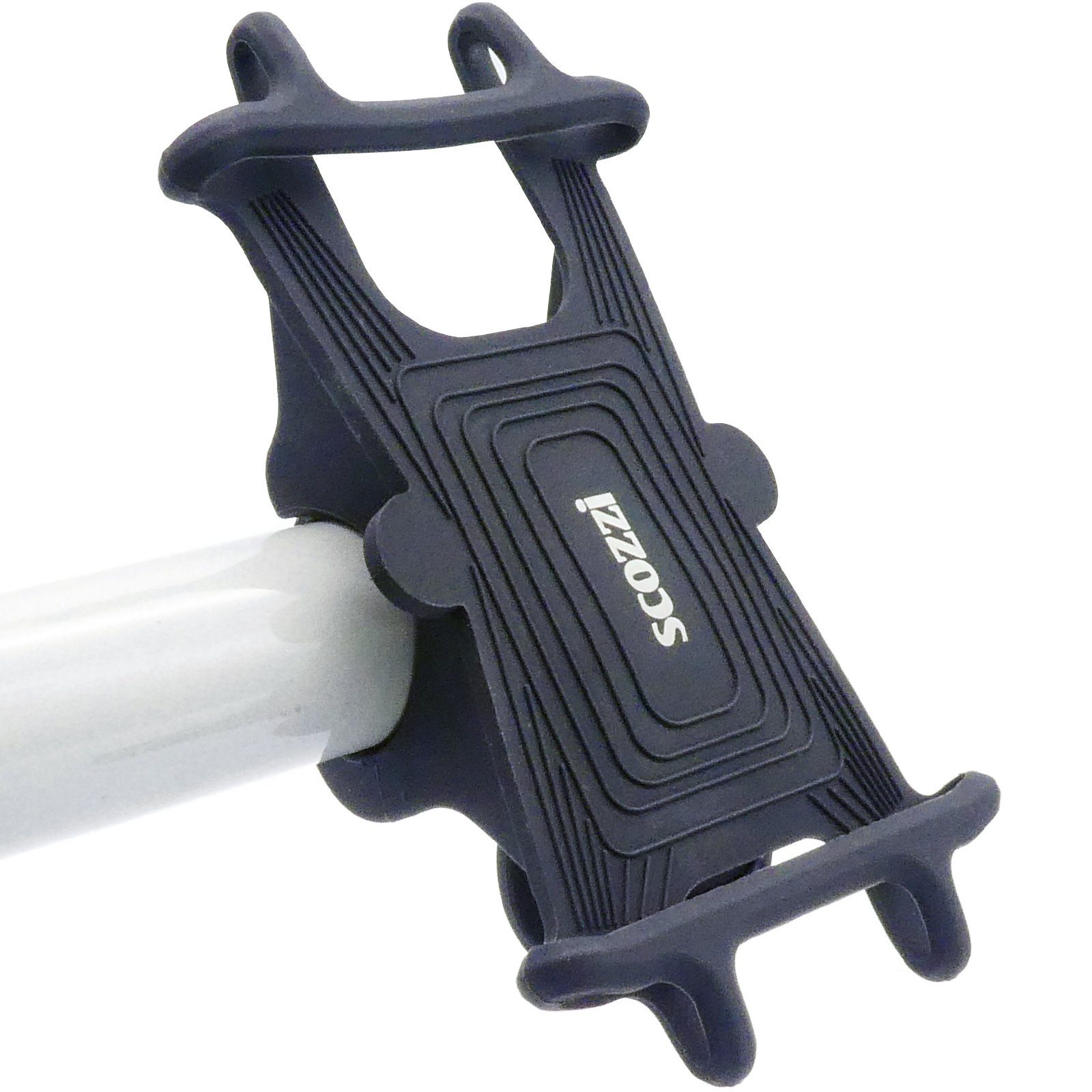 Mit dieser scozzi® Fahrrad Halterung hast du dein Smartphone unterwegs immer im Blickfeld. Geeignet für alle herkömmlichen Lenker. Durch die flexiblen Gummilaschen auch für dickere Lenker z.B. bei einem eScooter oder Motorrad passend. Kinderleichte & schnelle Montage ohne Werkzeug. Die Halterung ist fest mit dem Lenker verbunden und das Smartphone wird durch die Gummischlaufen fest fixiert, ohne zu verrrutschen. Durch das robuste Vollgummi und dem festen Halt auch für Extremsport geeignet.Ideal auch, wenn du dein Smartphone unterwegs als Navigationssystem für dein Streckenziel nutzt.
