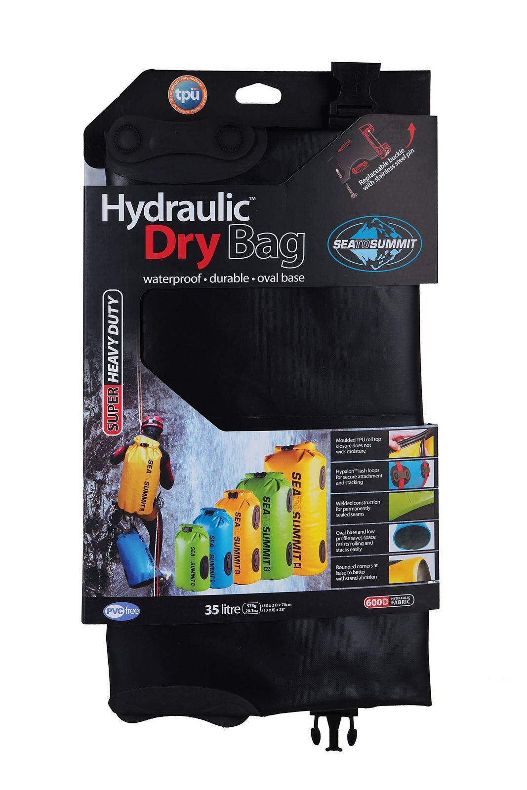 Bei Ihrem nächsten Abenteuer zu Wasser oder zu Lande in extremsten Umgebungen und Bedingungen sollte dieser Packsack von Sea to Summit nicht fehlen! In dem riesigen Packsack lassen sich allerlei Utensilien verstauen und dank des TPU Rollverschlusses und der komplett verschweißten Konstruktion bleibt alles im Inneren trocken. Das haltbare, UV resistente Material wird nicht brüchig in extremer Kälte. Der Clipverschluss ist ersetzbar. Mit dem Sea to Summit Hydraulic Dry Bag 35L werden Sie eine treue Hilfe an Ihrer Seite haben.