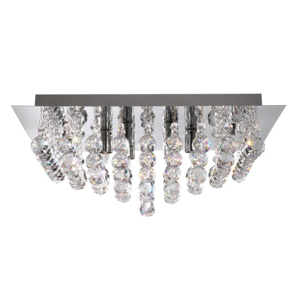 Diese 6flammige quadratische Hanna Chrom Deckenleuchte mit klaren Kristallkugeln passt perfekt zu jeder Decke in Ihrem Zuhause. Das luxuriöse Licht passt bündig zur Decke und verfügt über sechs Lampen, die von dekadenten Kristallverzierungen und Kugeln umgeben sind. Und die elegante quadratische, verspiegelte Rückplatte vervollständigt den Look dieses modernen Kronleuchters.
